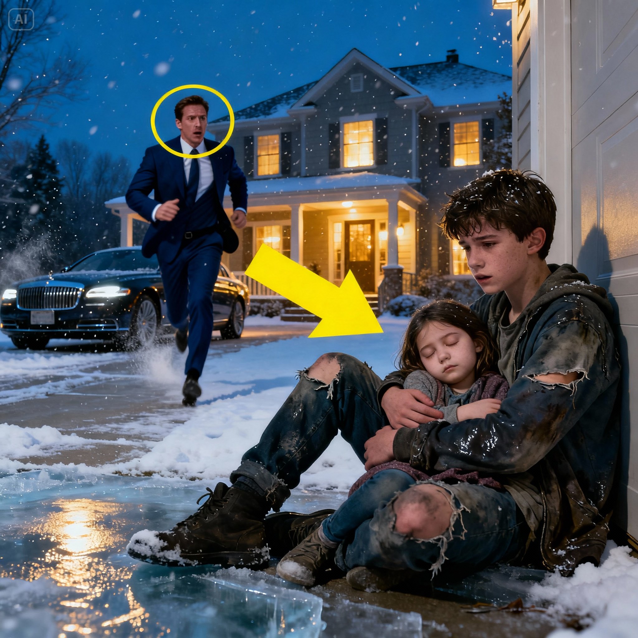 At 5:47 a.m., Richard Hartwell’s black Mercedes pulled into the driveway. His headlights cut through the predawn gloom, sweeping across the porch. He slammed on the brakes, his heart seizing at the sight: two small bodies, entwined in a blanket, his daughter and an unknown boy, rigid and still. “LILY!” he roared, fumbling out of the car, slipping on the ice. Lily’s eyelids fluttered. “Daddy…” she whispered, her voice faint. “He… saved me. His name is Marcus.” Richard saw the boy’s blue lips, the ashen skin, the barely perceptible breath. His hands shaking, he dialed 911, ordering two ambulances. He tore off his own expensive coat, wrapping it around both children, praying with a fervor he hadn’t known in years.