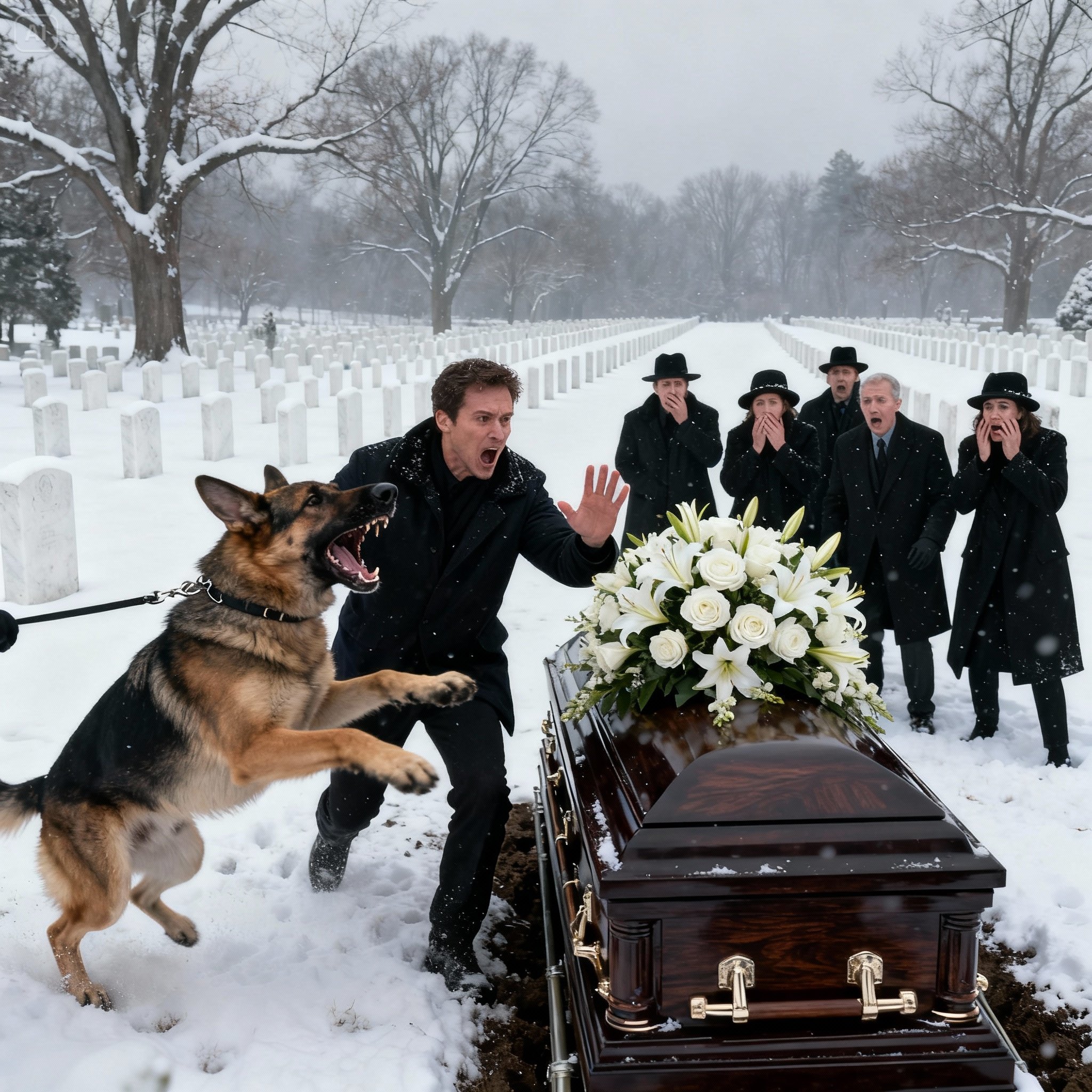 The frantic barks of Luna, my father’s German Shepherd, sliced through the solemn silence of Patrick’s funeral. Her hackles were raised, her gaze fixed on the closed casket, a desperate, high-pitched whine escalating into a series of sharp, distressed yelps. People gasped, their whispers cutting through the chapel, but I knew Luna better than anyone. This wasn’t a dog overwhelmed by grief; this was a warning.
