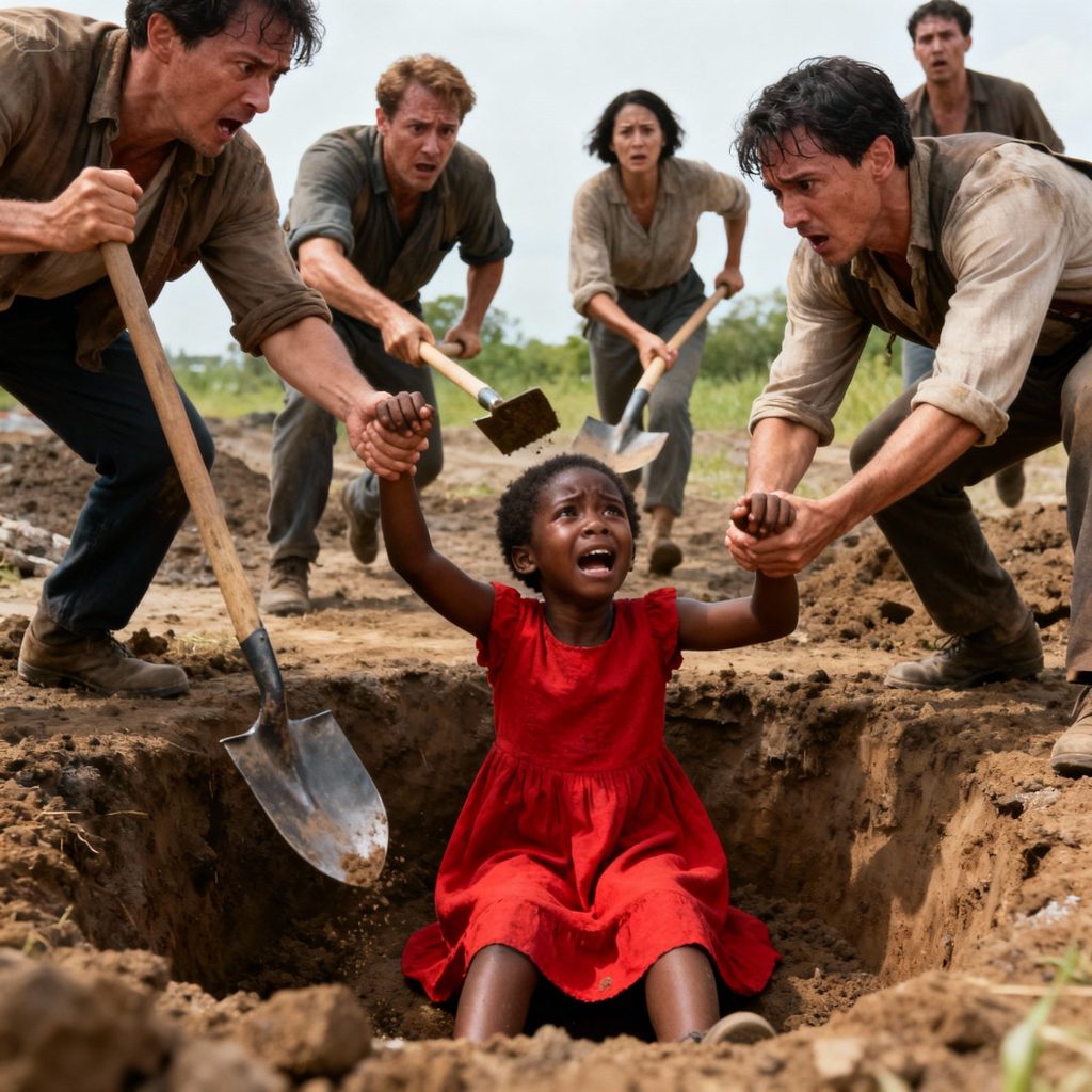 Meanwhile, in a desolate clearing deep within that very forest, the chilling sound of shovels scraping earth filled the air. Emily, no older than seven, whimpered, tears streaming down her sandy cheeks. Two burly men, their faces grim and unyielding, pushed her closer to a freshly dug pit. Sand already covered her small legs, weighing her down. “Please,” Emily choked out, her voice barely a whisper, “I want my mommy. I want my daddy.” One of the men, his voice guttural and harsh, silenced her. “Quiet, child! This is for the king. A sacrifice for prosperity!” Ms. Hayes stood to the side, her face a mask of cold indifference, watching the horrifying scene unfold. Just as the men raised their shovels, ready to pour more earth onto the terrified girl, the piercing wail of sirens ripped through the quiet forest, shattering the morbid ritual. “POLICE! STOP RIGHT THERE!” The sudden, overwhelming noise brought everything to a standstill. The villagers, caught off guard, froze. Some dropped their tools, their eyes wide with fear, and bolted into the dense foliage. Others stood rooted to the spot, paralyzed by shock. Ms. Hayes, attempting a desperate escape, was apprehended instantly by two swift-moving officers.