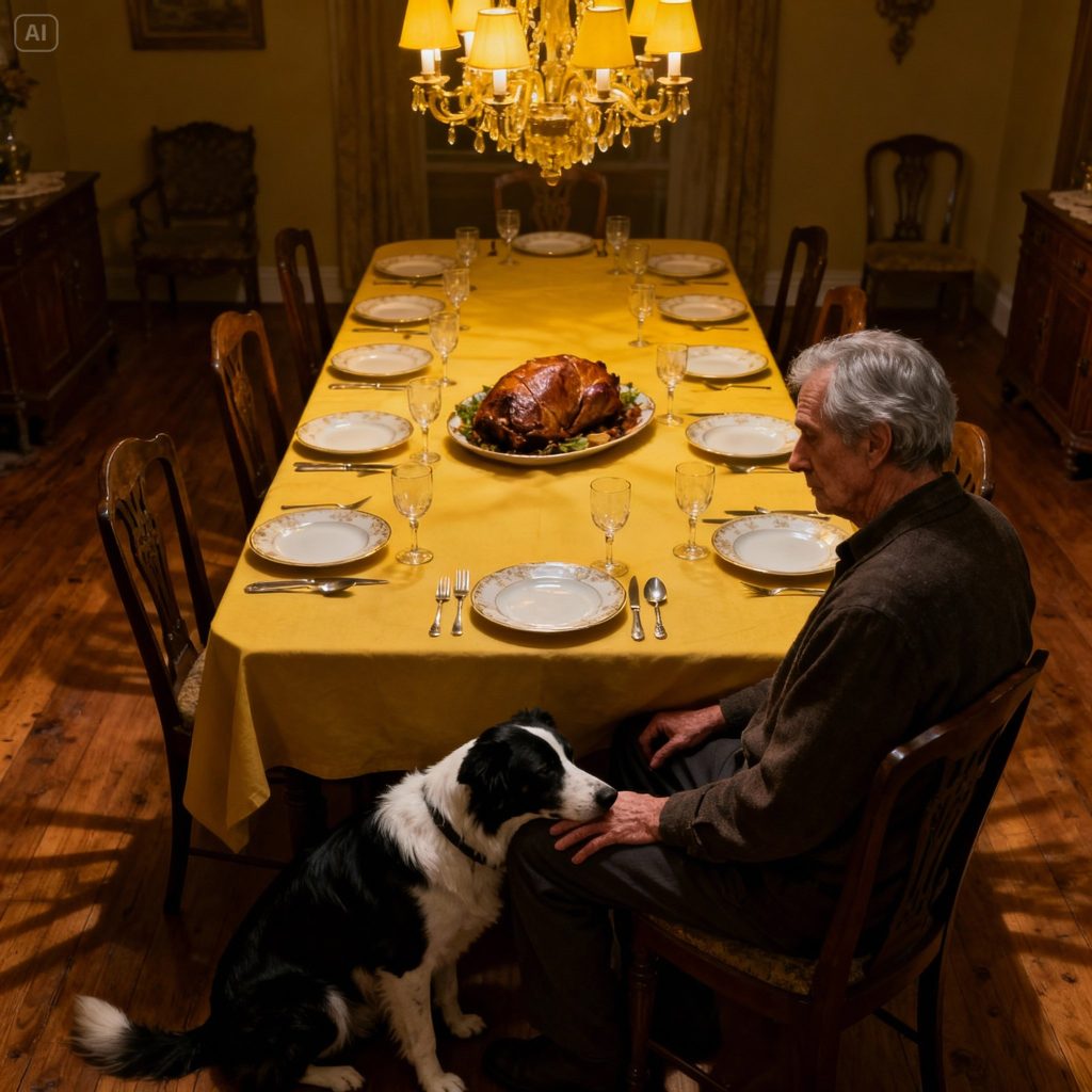Barnaby, acutely aware of the shift in atmosphere, positioned himself in the center of the living room, his gaze fixed on the now-closed front door. He looked at Frank, then at the desolate dining table, then back at Frank, emitting a soft, mournful whimper. He ambled to the spot where Leo had stood, sniffed the carpet, and let out a soft sneeze, as if even the dog registered the profound sense of being short-changed. Frank slowly entered the dining room and settled into the head chair, the grand oak table stretching before him like an unnavigable expanse. It was precisely 12:30 PM. The winter sun, usually a comforting presence, now cast elongated, pallid shadows across the snowy yard, accentuating the cold, stark emptiness that had taken root within the house. The sole sound was the measured tick-tock of the grandfather clock in the hallway, an indifferent sentinel marking the endless passage of time. “Well, Barnaby,” Frank murmured, his voice barely audible, “It appears it’s just the two of us.” Barnaby, sensing the depth of his master’s despondency, padded over and rested his chin on the pristine tablecloth, right beside Frank’s untouched plate—a transgression usually met with a stern reprimand. Today, Frank lacked the will to scold him. He carved a generous slice from the brisket’s coveted burnt end and offered it. Barnaby accepted it gently, a quiet communion, and thumped his tail once against the floorboards. Frank poured himself a glass of robust red wine, but its taste was insipid, devoid of joy. The emptiness in the house was no longer merely an absence of sound; it was a palpable pressure in his chest, a deep, aching void. They hadn’t merely departed; they had never truly arrived. They were fleeting specters, passing through, their true existences unfolding elsewhere. Frank rose, intending to draw the curtains, to blot out the unwelcome sight of the empty driveway—a stark monument to his shattered expectations. But as his hand reached for the fabric, his gaze fell upon a sight. A large, brown delivery step-van, its engine idling, parked three houses down. The driver, a young man, was jogging back to the vehicle, his posture conveying profound exhaustion. Frank watched as he retrieved a plastic container from a bag, slumped over the steering wheel, and took a dispirited bite of what appeared to be a dry, unappetizing sandwich. On a Sunday, amidst the frantic holiday rush, eating alone in a frigid truck while others were warm inside. Frank’s eyes shifted from his lavishly set table to the remaining five pounds of brisket on the carving board. He looked at Barnaby. “What do you say, boy?” Barnaby responded with a soft, inquiring bark. Frank didn’t allow himself to deliberate. Had he paused to think, he would have rationalized himself out of it, deemed it odd, intrusive, or inappropriate. Instead, he simply walked to the front door, opened it, and stepped onto the porch, the biting air instantly enveloping him in its icy embrace.
