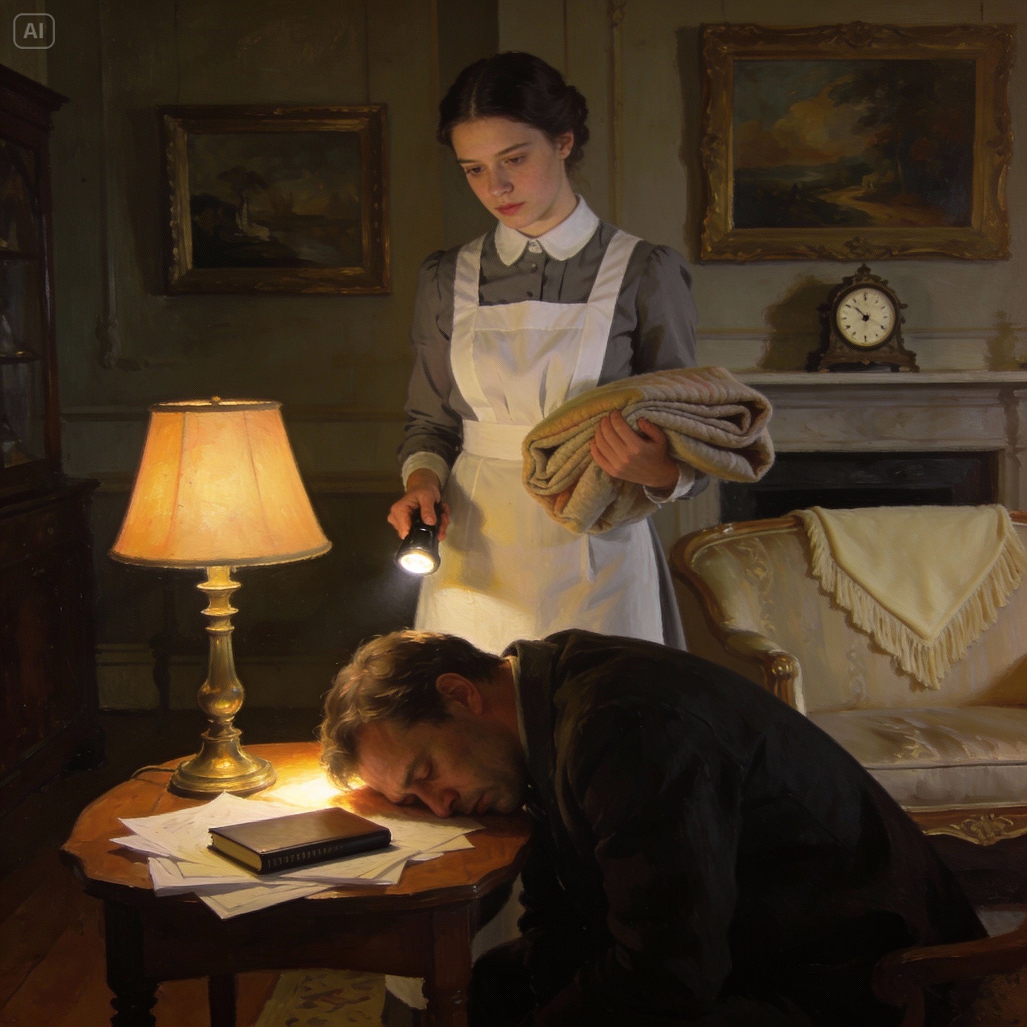 Liam meticulously prepared his elaborate charade. He reclined on the grand parlor sofa, feigning deep unconsciousness, his most coveted timepiece conspicuously placed on a nearby side table, alongside an open wallet displaying a wad of crisp bills. He knew Mia’s late-night cleaning schedule, expecting her around eleven. With his eyelids barely parted, he lay in wait, poised to detect the slightest hint of avarice, a lingering gaze at the money, any tell-tale sign of temptation. The vast room was hushed, save for the soft crackle of embers in the hearth, as he awaited her arrival.