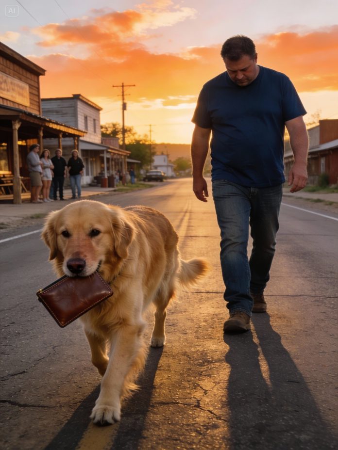 The pieces clicked into place. That pouch wasn’t storage; it was a bridge. My father, who couldn’t express care directly, found another way. Rusty wasn’t just a pet; he was a messenger, the tangible extension of a kindness my father couldn’t offer face-to-face. We continued our walk for two more hours. A diner waitress received “anonymous” cash for diapers. A librarian let Rusty sit quietly while she read poetry aloud, her voice soft and rhythmic. The town, I realized, was stitched together by these quiet acts of generosity, delivered by a Golden Retriever. By sunset, we were back at the house. My hands trembled as I unclipped the leash. The vet appointment was canceled. Then, with a profound sense of awe, I opened the leather pouch. Inside, beneath the receipt, was a folded piece of notebook paper. The handwriting was shaky, blocky—Dad’s.