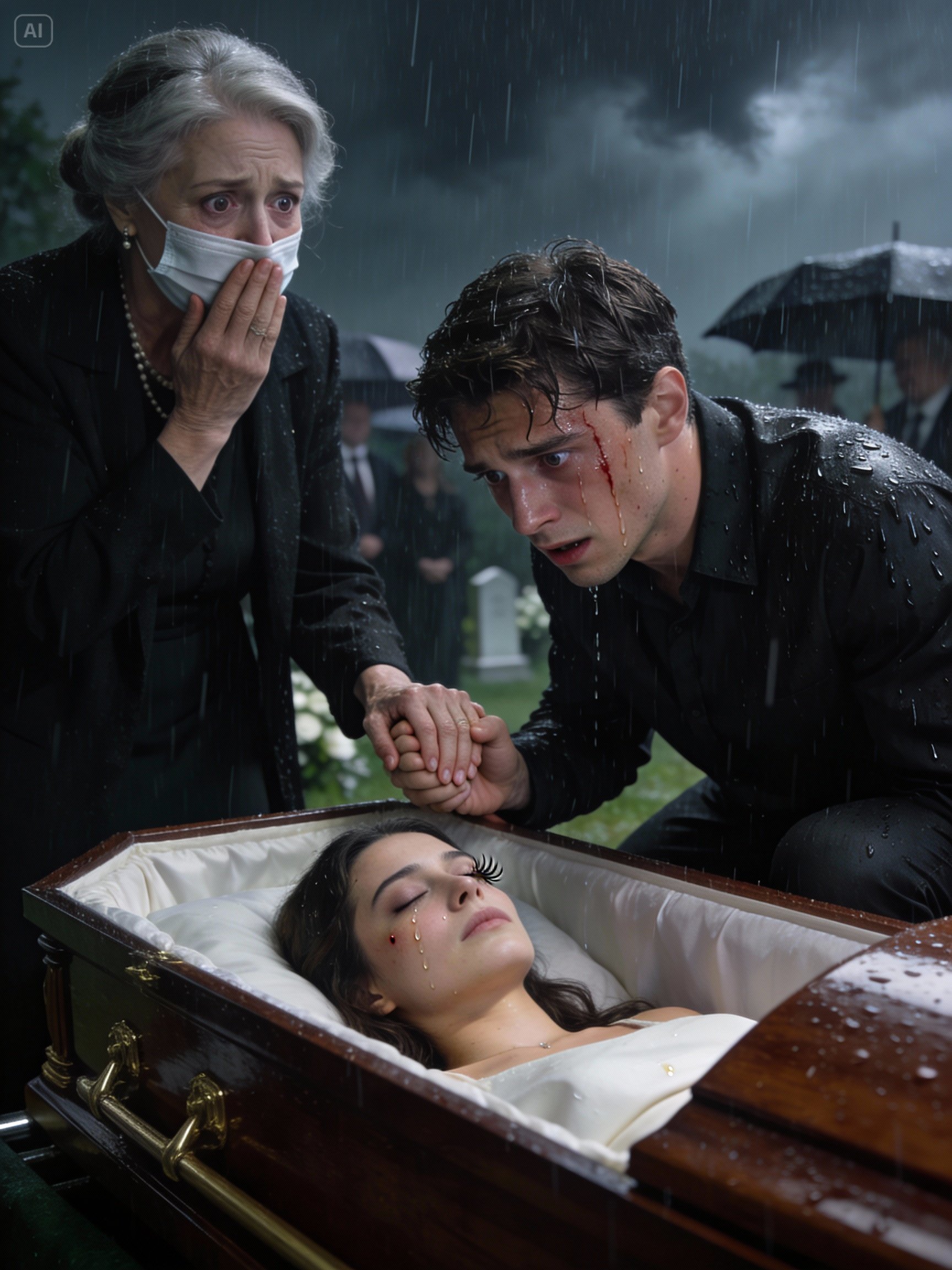 Martha let out a guttural scream, collapsing beside the coffin, her fingers desperately clutching Sarah’s cold, lifeless hand. “Sarah… my child… please don’t cry anymore,” she sobbed, her voice raw with anguish. “If anything remains unsaid, tell me… Forgive us, my sweet girl…” A profound silence descended upon the courtyard, broken only by the relentless rain. Then, a choked sob, raw and visceral, pierced the quiet air. All eyes turned to David, Sarah’s husband. He was kneeling, his face buried in his hands, his body wracked with inconsolable grief.