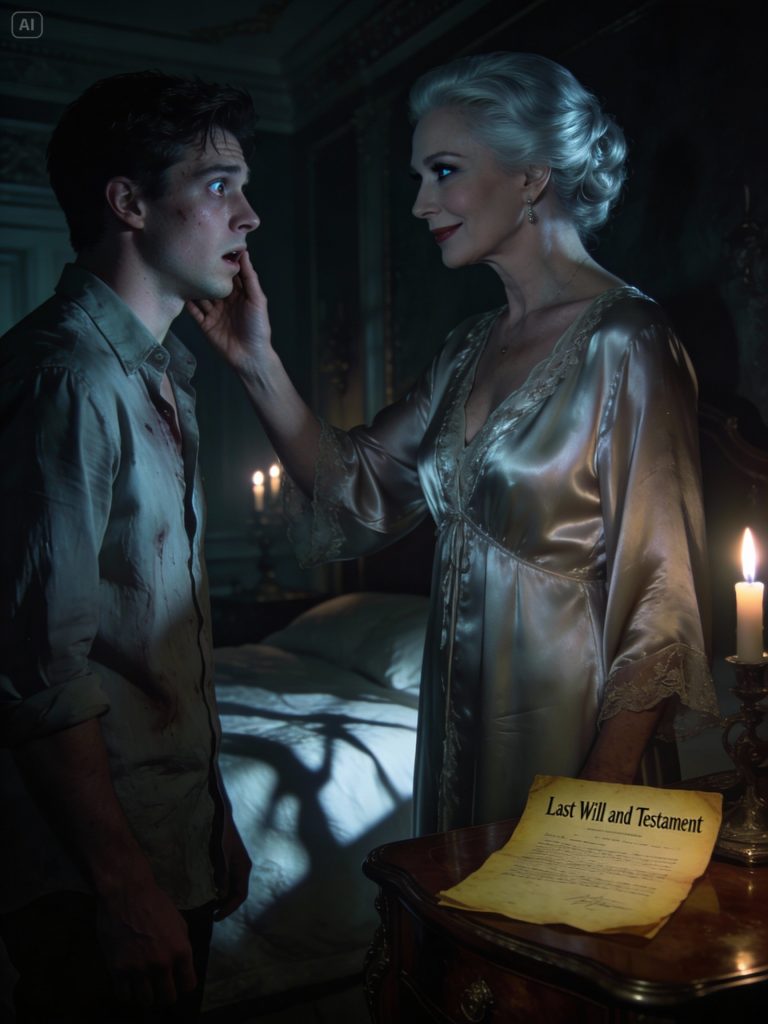 Alex staggered from the room, his mind reeling, an overwhelming sense of betrayal consuming him. Affection, deference, trust—all shattered into countless fragments. That evening, Eleanor entered his room, her smile as tranquil as ever. “You appear unwell, Alex. Is something amiss?” He gazed at her—silver-haired, exquisite, terrifying. Only one query resonated within his thoughts. “Who are you truly?” He placed Richard’s antiquated will on the nightstand. Eleanor glanced at it, her eyes briefly closing in an almost imperceptible gesture before she offered a faint smile. “So you have unearthed it.” Her voice was light, ethereal, yet it possessed a chilling resonance that congealed his blood. “Excellent. Now you comprehend, Alex. Love is inextricably linked with power. And within these walls, those who know too much… cannot depart.” Alex instinctively retreated, a primal fear seizing him. She moved closer, her fingers brushing his cheek, a touch that felt like frost. “He uttered the same words to me,” she whispered, her gaze piercing his. “And now… I convey them to you.” A sudden draft extinguished the nearby candle. Darkness engulfed the room. In that moment, Alex realized, with a sickening certitude, that he had become the second man ensnared in Eleanor Vance’s lethal, inescapable machinations.