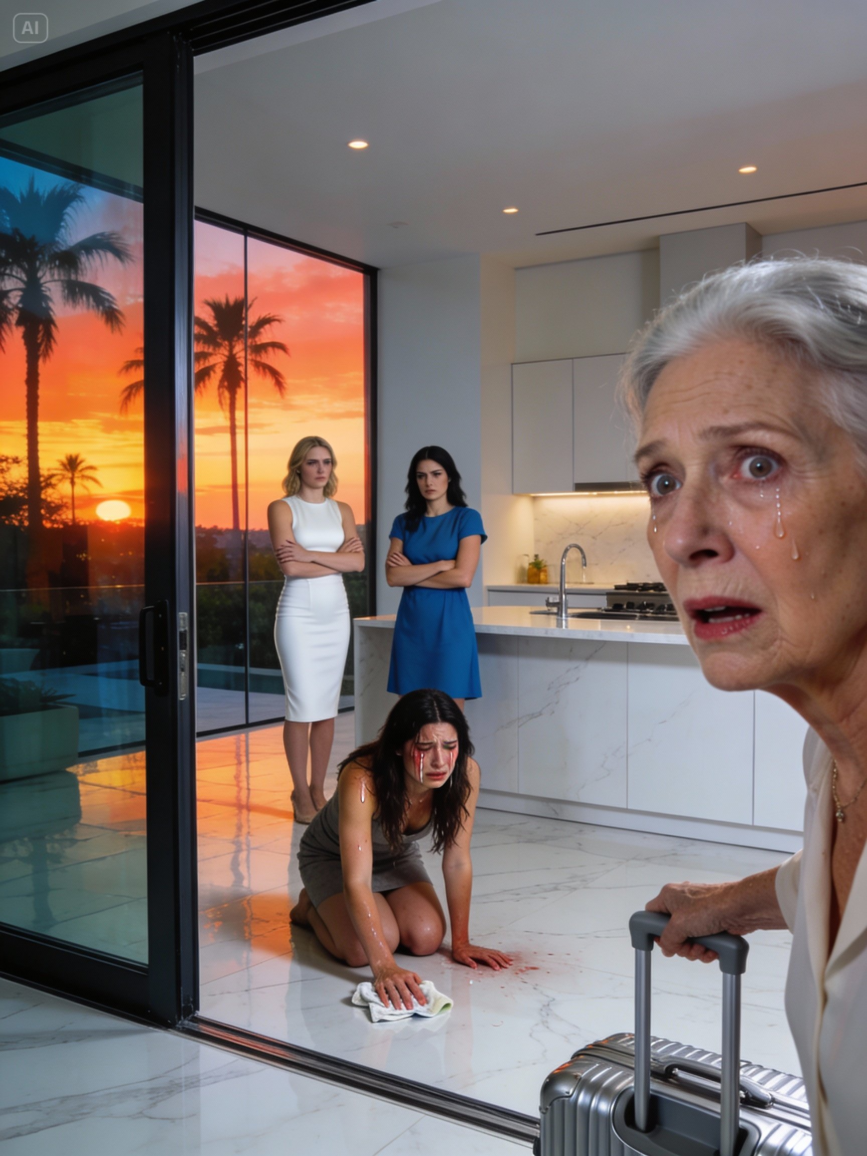 The sharp intake of my breath finally drew Evelyn’s attention, her composed facade cracking to reveal a flicker of annoyance before settling back into an icy disdain. Emily, startled, spun around, her eyes widening in a mixture of terror and dawning recognition. “Mom?” she stammered, scrambling upright, the scrub brush clattering loudly to the tiled floor. “What are you doing here?”