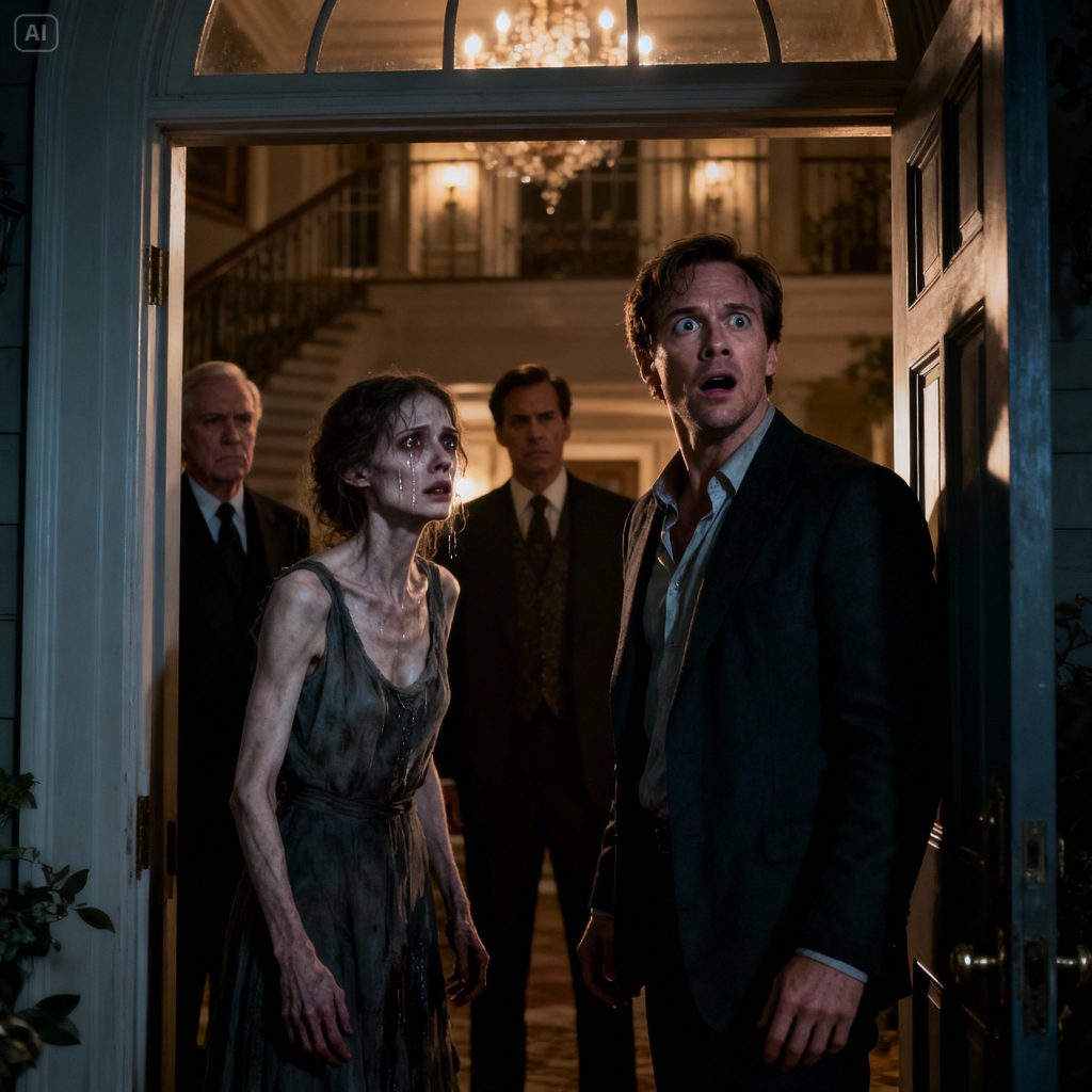 The line went dead. Danger? What danger could there be now? Sarah was gone. His mind reeled, a whirlwind of confusion and a fresh surge of dread. He glanced at the framed photo of Sarah smiling brightly on the mantelpiece, then at the closed doors behind which his kids, Emily and David, were likely doing homework, oblivious. He grabbed his keys, heart pounding with a mixture of grief, anger, and a nascent fear he couldn’t name. The drive to Harrison’s sprawling, secluded mansion felt impossibly long, the setting sun casting long, ominous shadows. He pulled up to the ornate gates, which swung open silently, as if expecting him. He parked, walked to the massive oak front door, and pressed the bell. The door creaked open, not by Harrison, but by a figure standing just inside, silhouetted against the dim interior. John’s breath hitched. His blood ran cold. He froze.