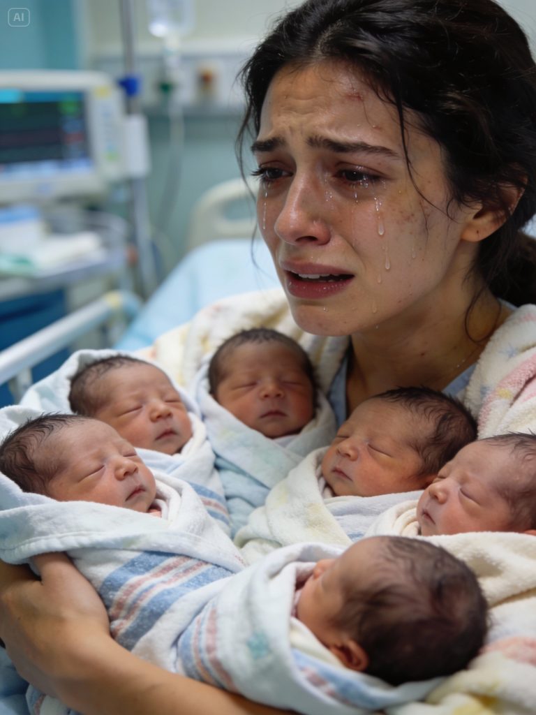 The delivery room was filled with sound—five cries rising and falling at once, uneven but alive. The young woman lay back against the pillows, exhausted beyond words, yet smiling as tears traced her cheeks. In the clear bassinets beside her, five newborns slept and stirred, small and fragile, their chests rising in perfect rhythm. She had carried them for months alone, and now they were finally here.