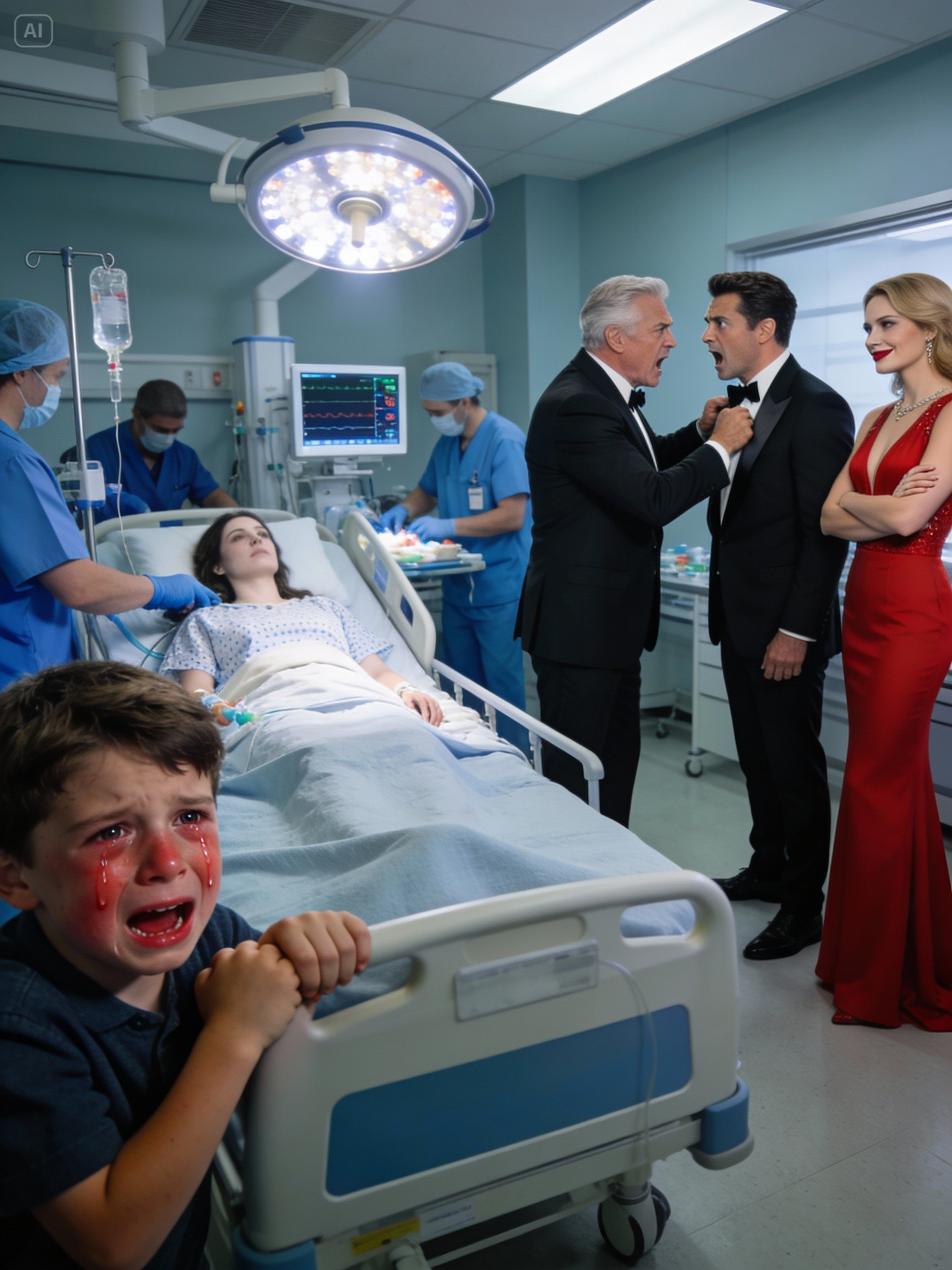 The hospital lights were unforgiving. They showed everything he wanted hidden: the rumpled shirt, the lipstick stain, the man who arrived hours too late. He demanded answers and received a slap instead. His father-in-law stood in front of him like a wall, grief hardened into fury, telling him what an eight-year-old had been forced to do because his father was unavailable.