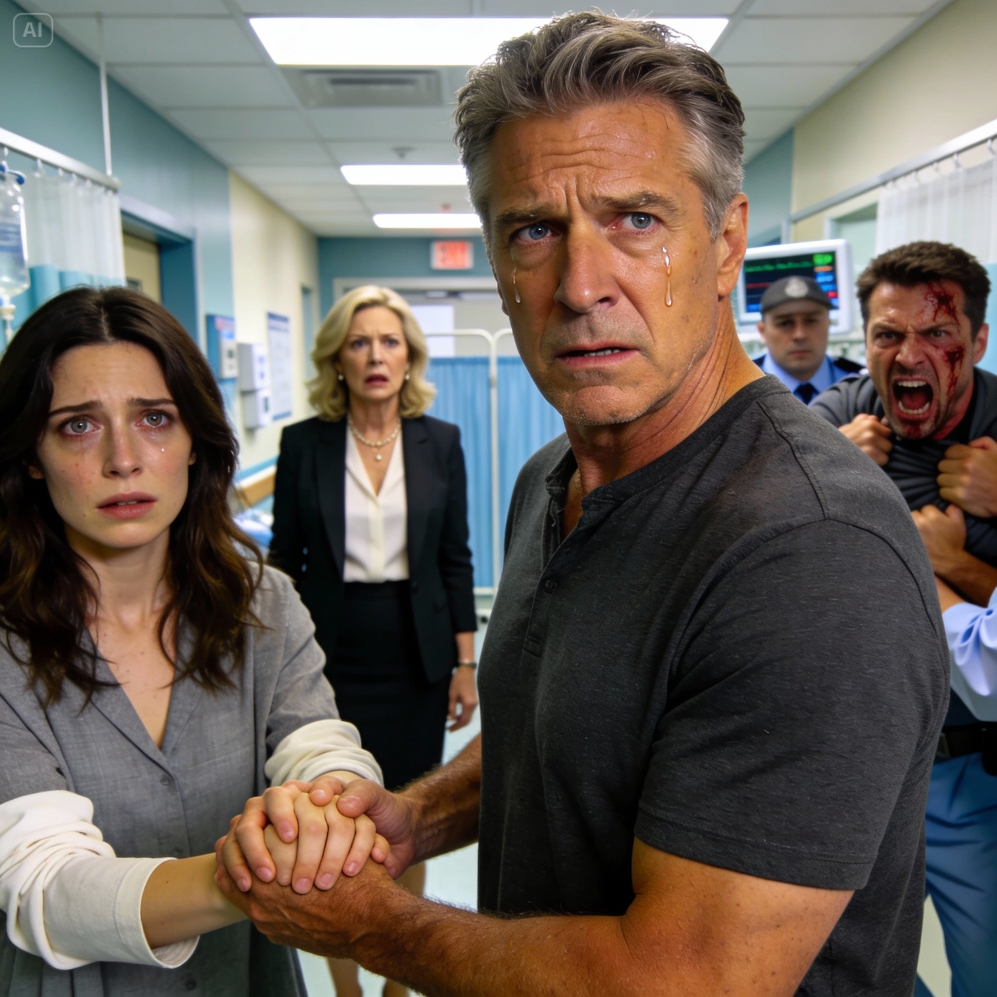 His eyes flickered—calculating, scanning for weaknesses. But the front desk was watching. Nurses were watching. A security guard had stepped closer. Derek’s power depended on silence, on private rooms, on no witnesses. Here, under fluorescent lights and policies and cameras, he was just a man trying to force control.