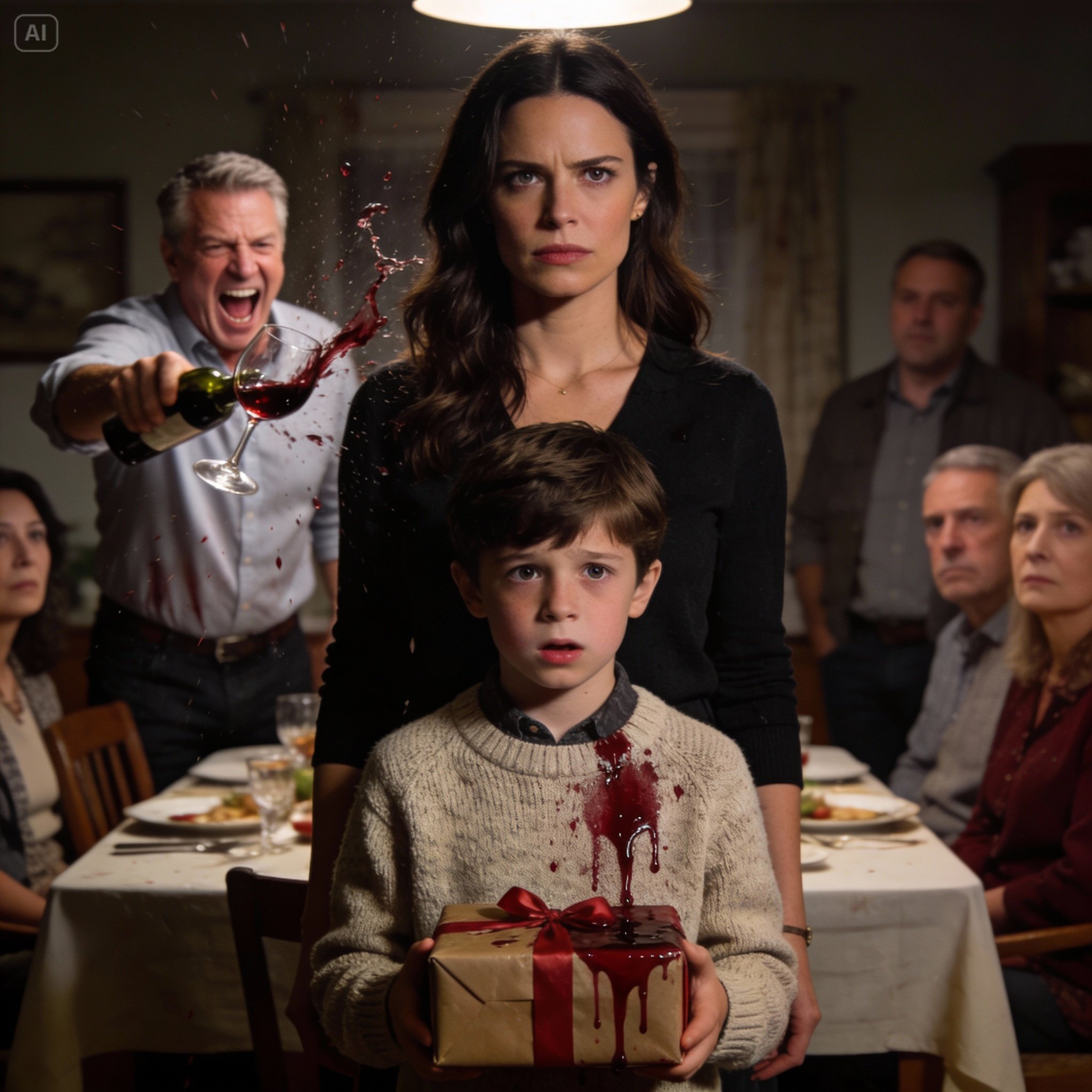 Noah stood still, wine-colored reflections flickering on the glass in my father’s hand. He looked up at Frank as if trying to understand why adults demanded surrender like it was love.