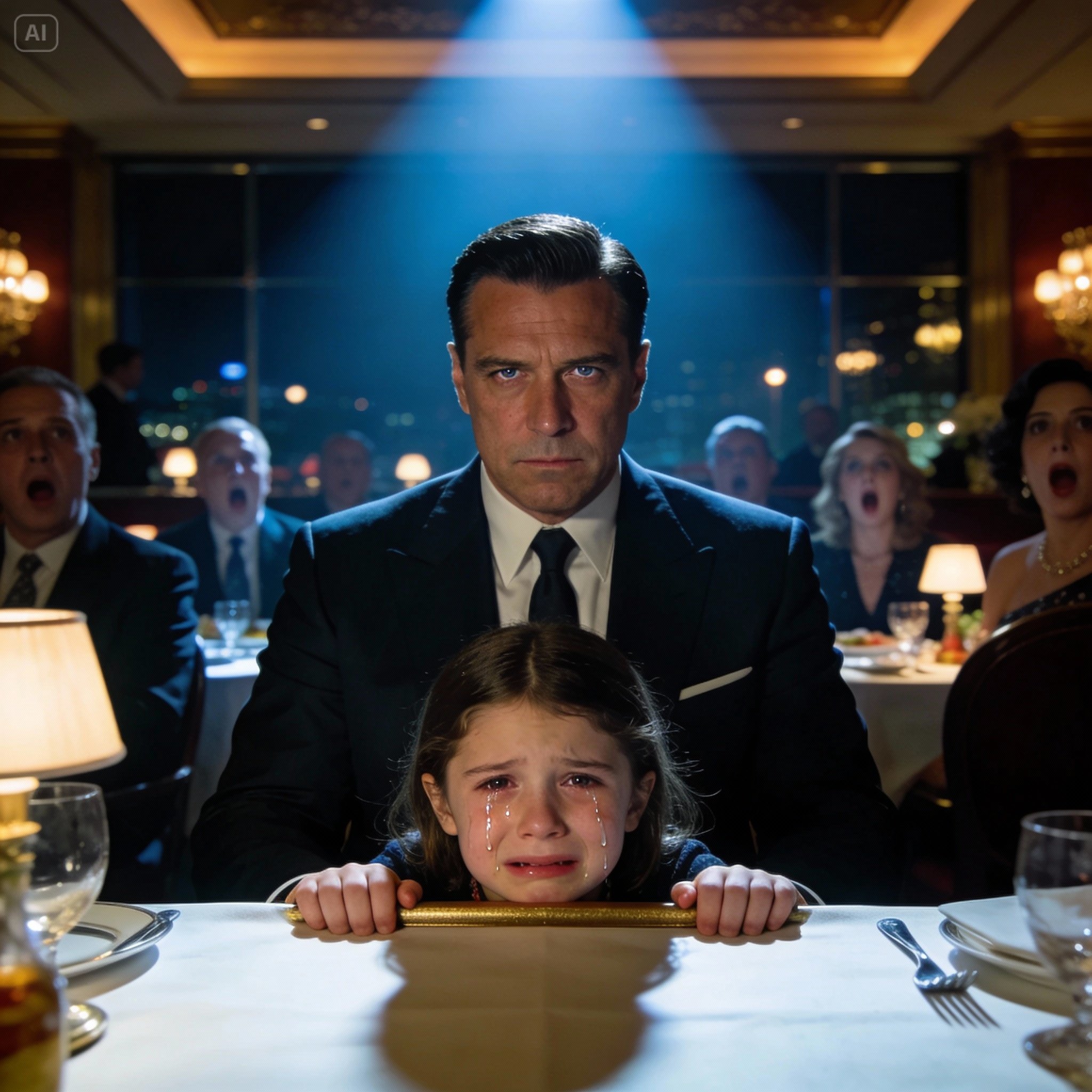 She was small, breathless, red-faced from crying too hard. Her sweater hung crooked on her shoulders like it had been yanked. She didn’t slow down. Didn’t hesitate. She ran straight through the room, ignoring the stares, the gasps, the sharp intake of breath from a waiter who nearly dropped a tray.