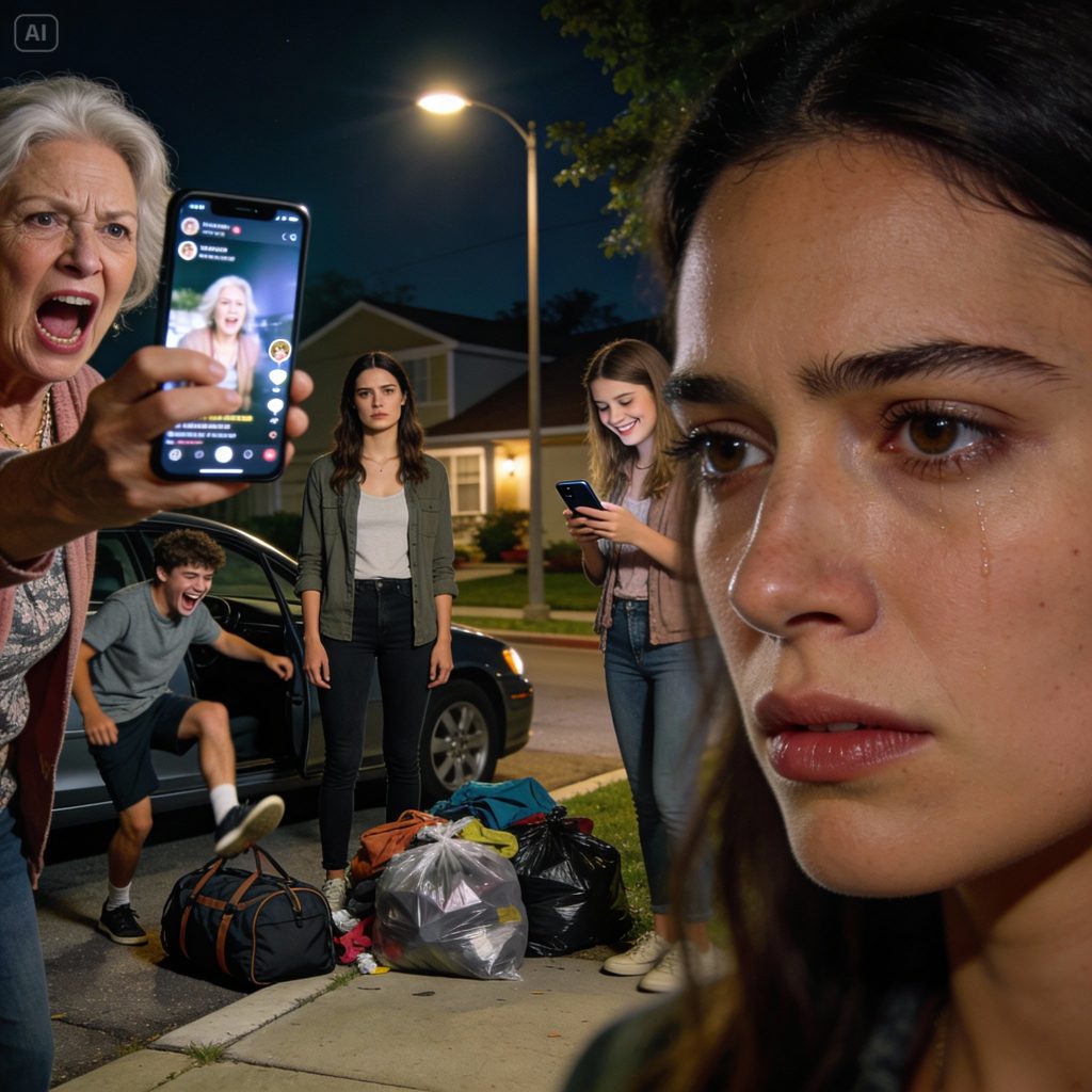 I knew something was wrong before I even parked the car. My belongings were scattered across the driveway—clothes half spilling from trash bags, books bent at the corners, a lamp lying on its side like it had been dropped in a hurry. Standing near the trash bin was my mother, Linda Harper, holding her phone upright. The red LIVE icon glowed at the top of the screen. My brother Derek stood beside her, filming from another angle, laughing. My sister Paige hovered close, eyes glued to the comments, reading them out loud like a game show host.