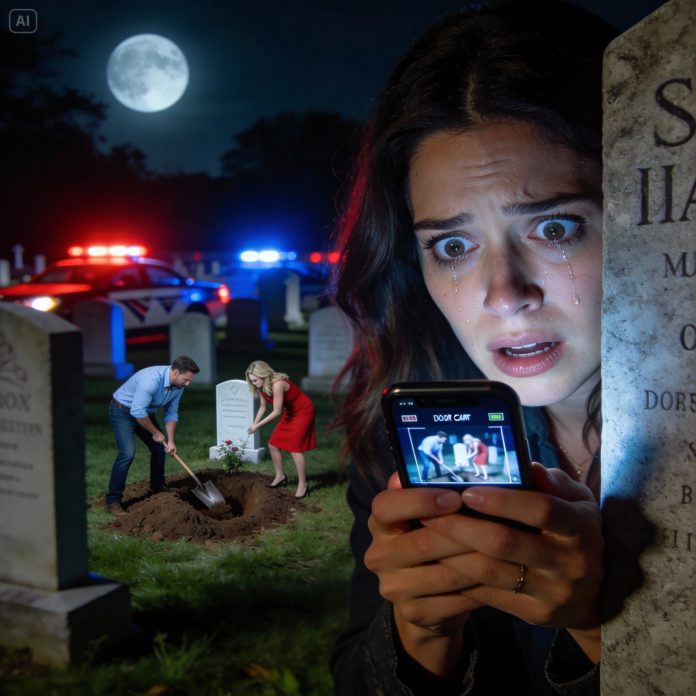 I grabbed my keys and drove out into the night, heart pounding, headlights cutting through the dark. The cemetery was silent, washed in pale light. I parked behind trees and opened the backup phone.