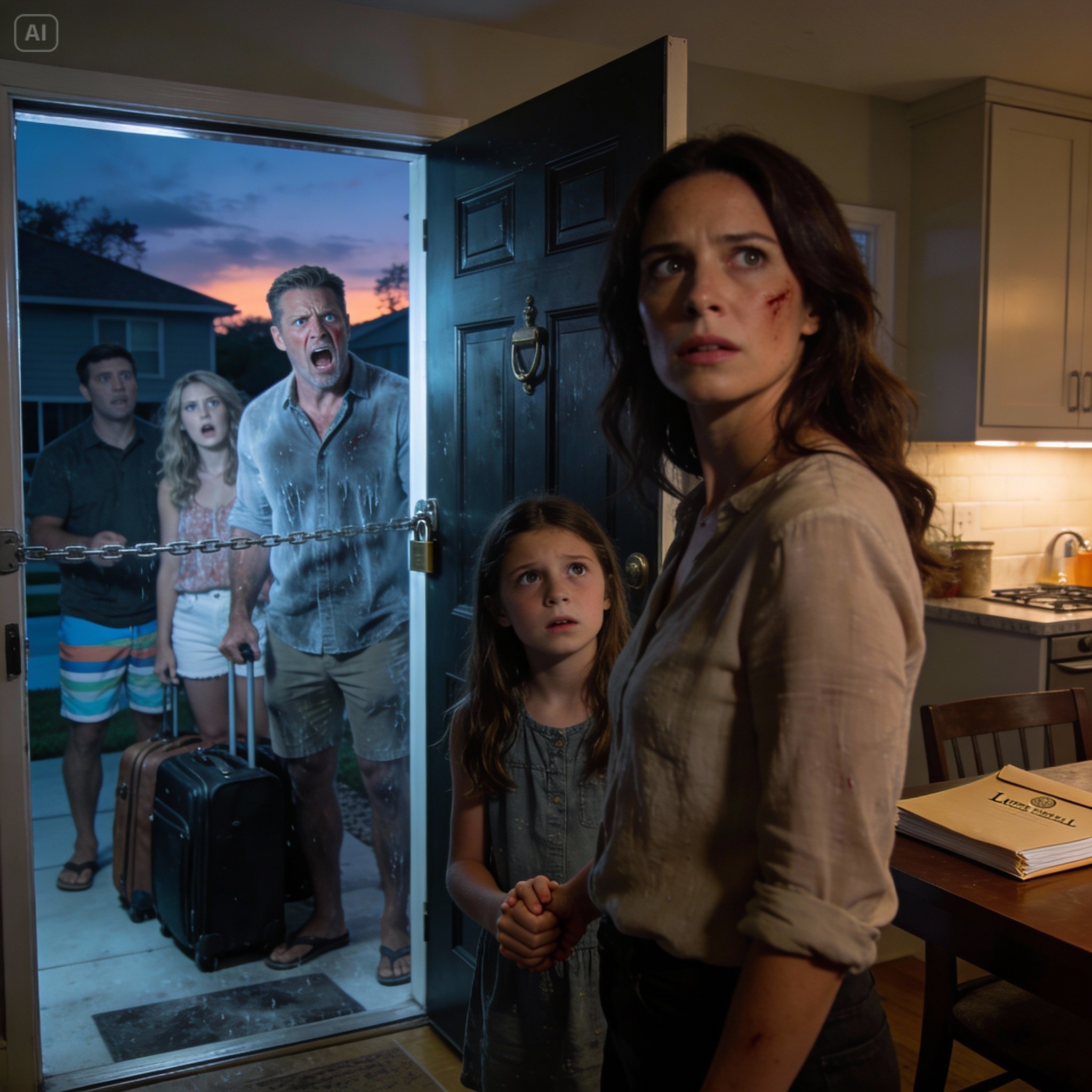 The Garage Door Opened At 6:18 P.M., And The House Filled With The Sound Of Rolling Suitcases And Sunburned Complaints. I Watched Through A Doorbell Camera Feed From Mrs. Kaplan’s Living Room, Mia Curled Beside Me With A Pillow. Evan Entered First, Still Wearing A Beach Bracelet. Diane Followed With Shopping Bags. Paige Came Last, Her Boys Dragging Sand Out Of Their Sneakers. They Didn’t Notice The New Locks Right Away. Evan Tried His Code, Frowned, Tried Again, Then Slapped The Keypad Like It Had Betrayed Him. Diane Said Something Sharp. Paige Laughed Like It Was A Prank. Then Evan Saw The Envelope On The Kitchen Table.