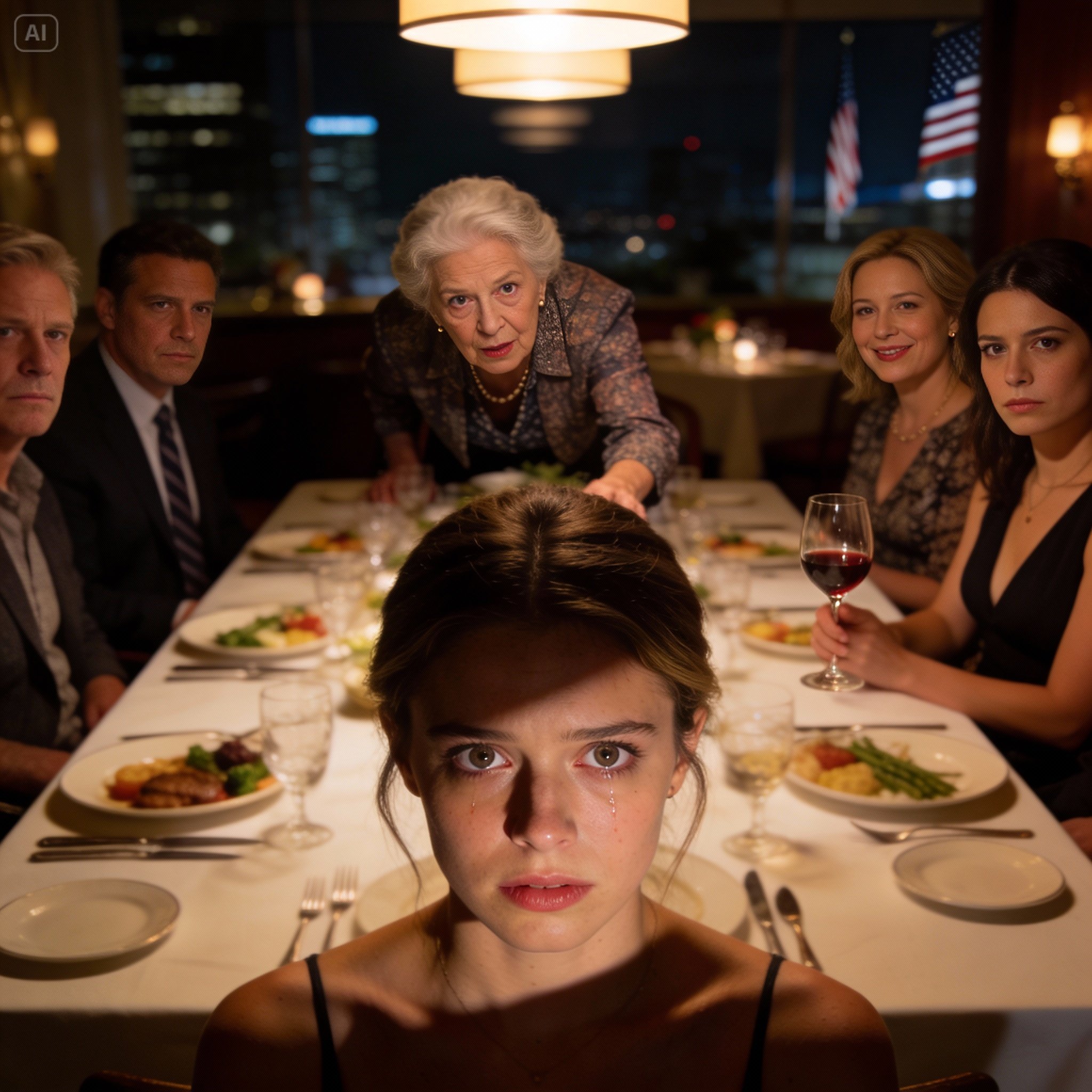 Halfway through dinner, she folded her napkin, stood up, and said calmly, “Excuse me for a moment.”