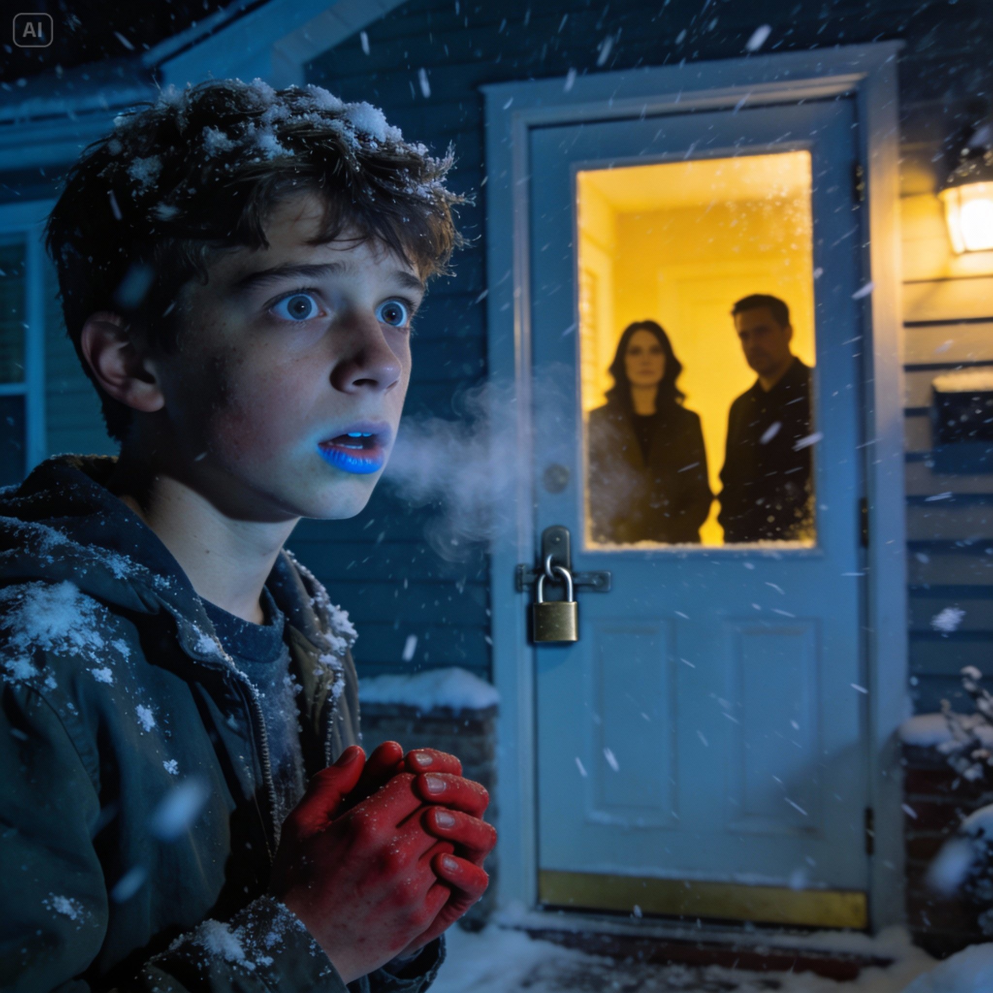 They didn’t. Minutes stretched thin. My fingers burned, then went numb. The cold shifted from pain to pressure, like something heavy settling inside my chest. I slid down the wall, breathing shallow clouds, and understood with sudden clarity: this wasn’t discipline. This was abandonment.