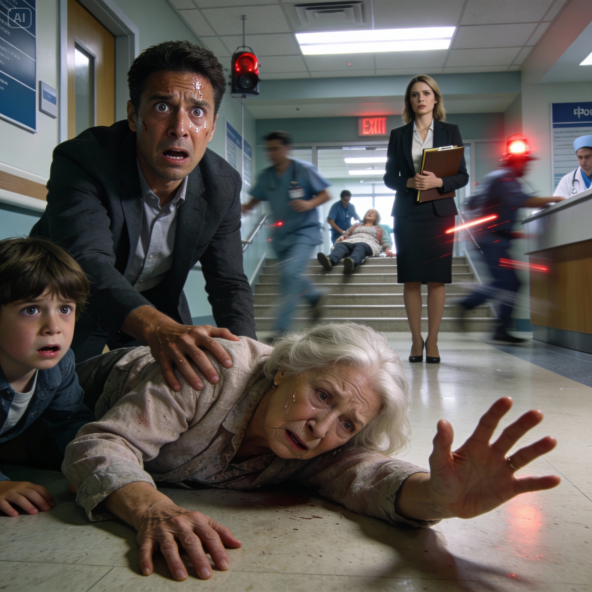 Mom’s knees buckled. She fell hard, her head striking the floor. Alarms sounded. Staff rushed in. Rachel stepped back, eyes wide, as if she’d never seen her before.