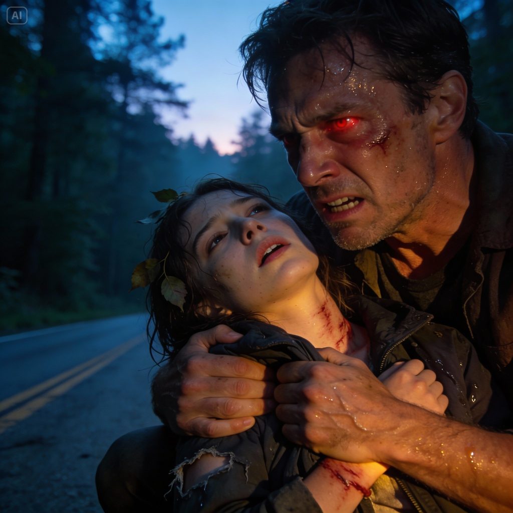 I found my daughter just as the sky was starting to pale, in the narrow band of woods behind the service road where the trees crowd together and the ground never quite dries. I’d been searching since midnight, calling her name until my throat burned, my jeans soaked through from brushing past wet leaves. When I finally saw her, she was almost hidden by the brush, curled tight like she was trying to disappear. For a moment she didn’t move at all, and my chest locked.