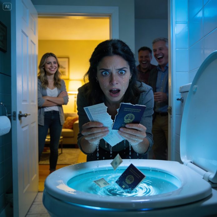 The toilet roared, water spinning, paper vanishing. I stood there frozen while my sister, Emily, leaned against the bathroom counter with a satisfied smile.