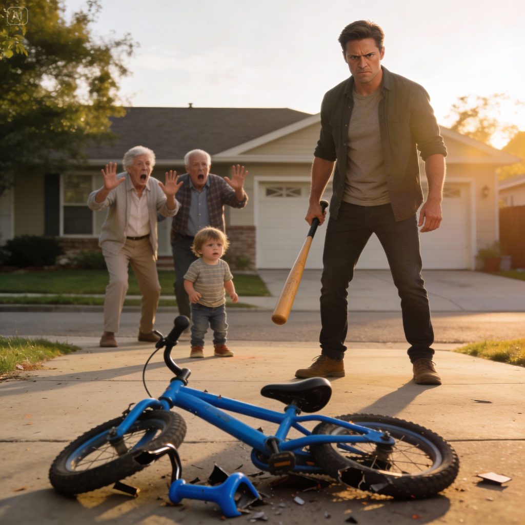 Before I understood what was happening, he lifted the bike and slammed it onto the concrete. The sound was sharp and violent. Plastic cracked. Metal bent. My son froze, then screamed in pure terror.