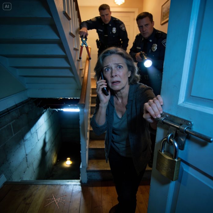 I crossed the kitchen and reached for the door leading downstairs. That’s when I saw it—a heavy padlock fixed on the outside of the basement door.