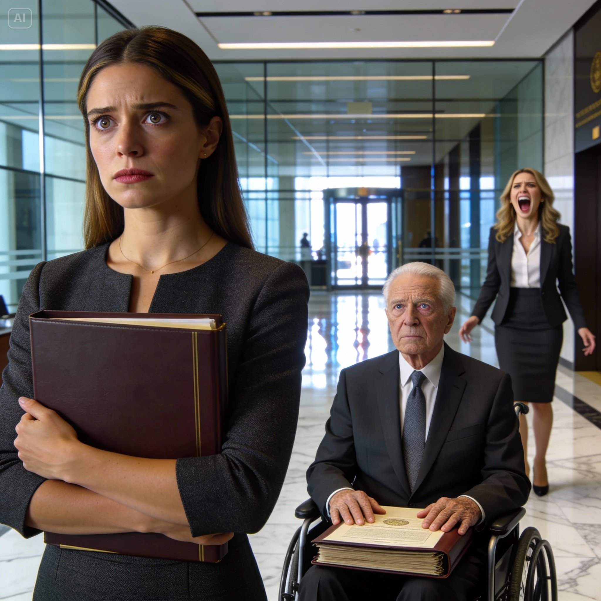 I stood behind my chair, hands clenched. The old man—still unnamed—rolled in beside me as if we’d arrived together on purpose. He set his folder on the table with care, and the sound of it touching the wood made the room go quieter.