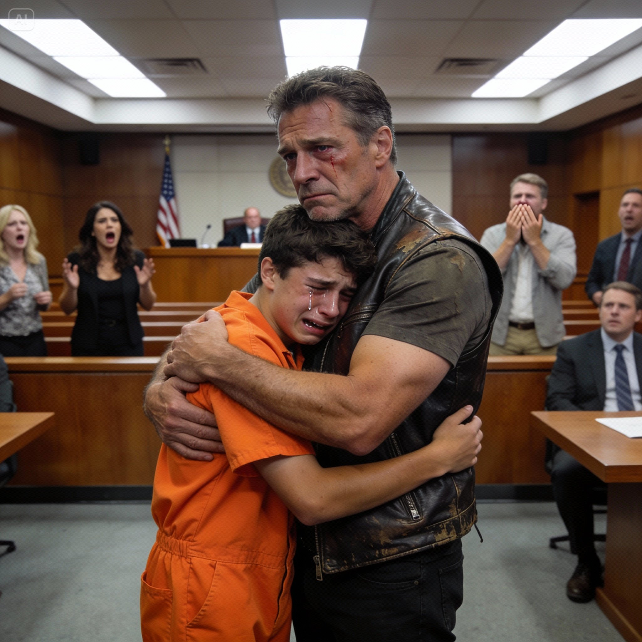I could feel it in the way people leaned away from me in the hallway, the way the bailiff’s eyes tracked my leather vest like it was a warning label. I wasn’t dressed like the other parents in that courtroom. No pressed blazer, no pearl earrings, no tissue clenched politely in a manicured hand. I looked like what grief had turned me into—boots scuffed from pacing hospital corridors, knuckles still swollen from punching the garage wall the night the police came.