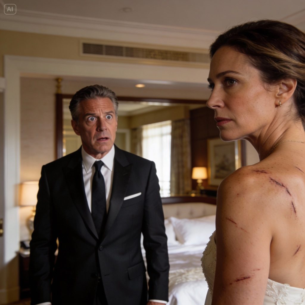 Richard didn’t react at first. He couldn’t. As Elena slipped out of her dress, the dim light revealed scars across her back and arms. Not faint marks or accidents, but deep, uneven lines, some old, some newer. Evidence of violence. Of years survived rather than lived.