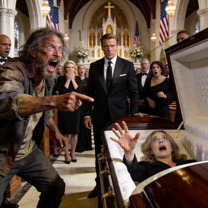 Graham stood, palms raised, voice too clean. “Everyone stay calm. This is a disgusting stunt.” He looked at security, not the coffin. “Restrain him.”