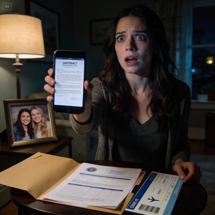 I stood in my kitchen with my palm pressed against the counter, trying not to collapse. My email pinged again: a flight itinerary. One-way. Florida to somewhere else I didn’t recognize. Then another email—contract documents—pages and pages of language that made my eyes blur.