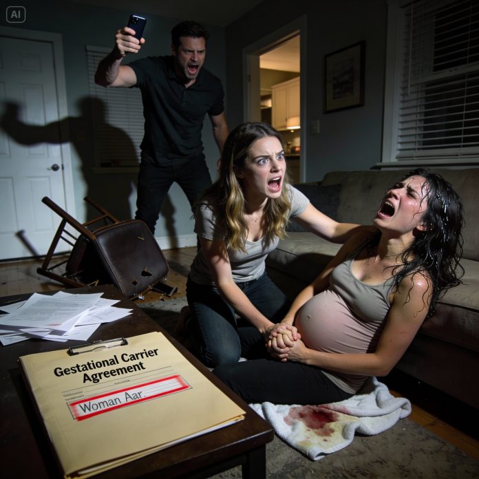 I reached into my tote, pulled out the contract, and thrust it toward the paramedic. “Her signature is on that,” I said, voice shaking with anger. “She’s the carrier. That doesn’t make him the father. And the intended parents are my parents. She’s being threatened.”