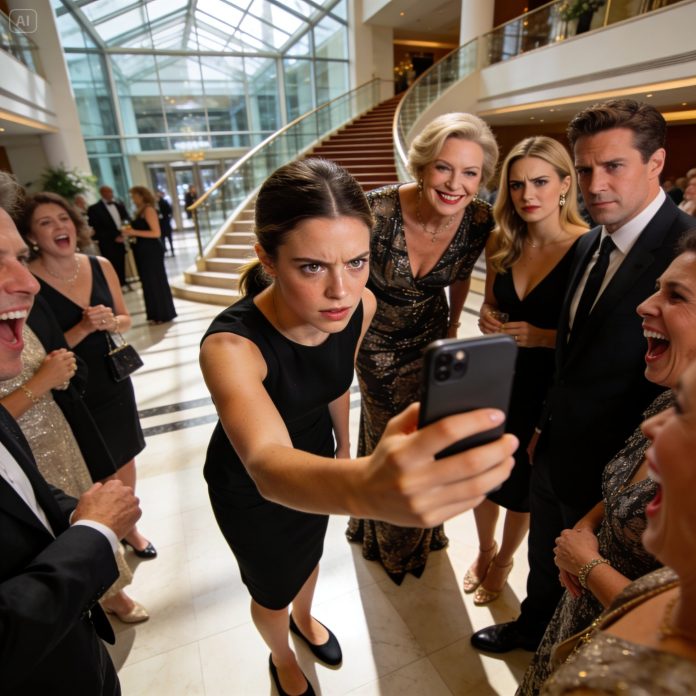 She was at the entrance greeting guests like she was the mayor. When I stepped inside, she scanned me head to toe, then leaned in close, perfume sharp as a warning.