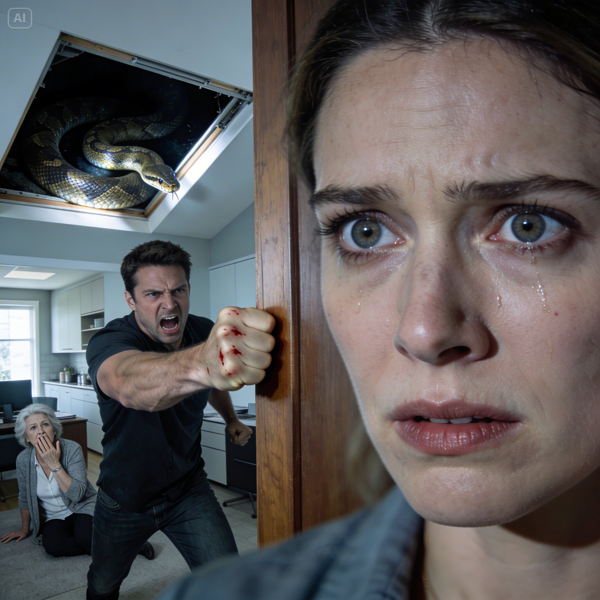 For three months, a big snake has been living with us inside our house—up at the highest point of the roof—close enough that at night I could hear something shift above the ceiling like a slow, heavy sigh. Nobody knows. Not the neighbors. Not my friends. Not even my mother, Elaine, who still believes the noises are “old house settling.”