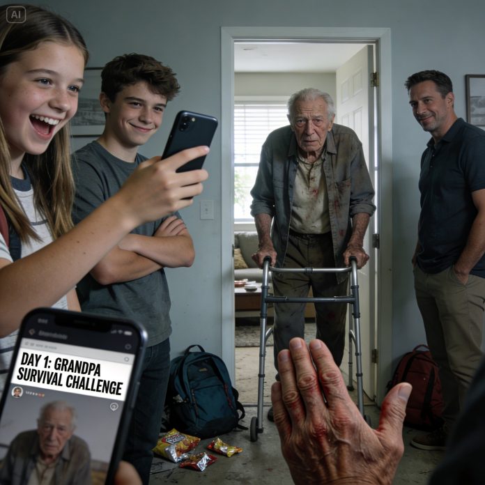 “Okay guys,” she said, voice bright and cruel. “Welcome to day one of the Grandpa Survival Challenge. Rules: nobody helps Grandpa. No rides, no food, no meds reminders. If he’s really as helpless as he acts, we’ll find out.”