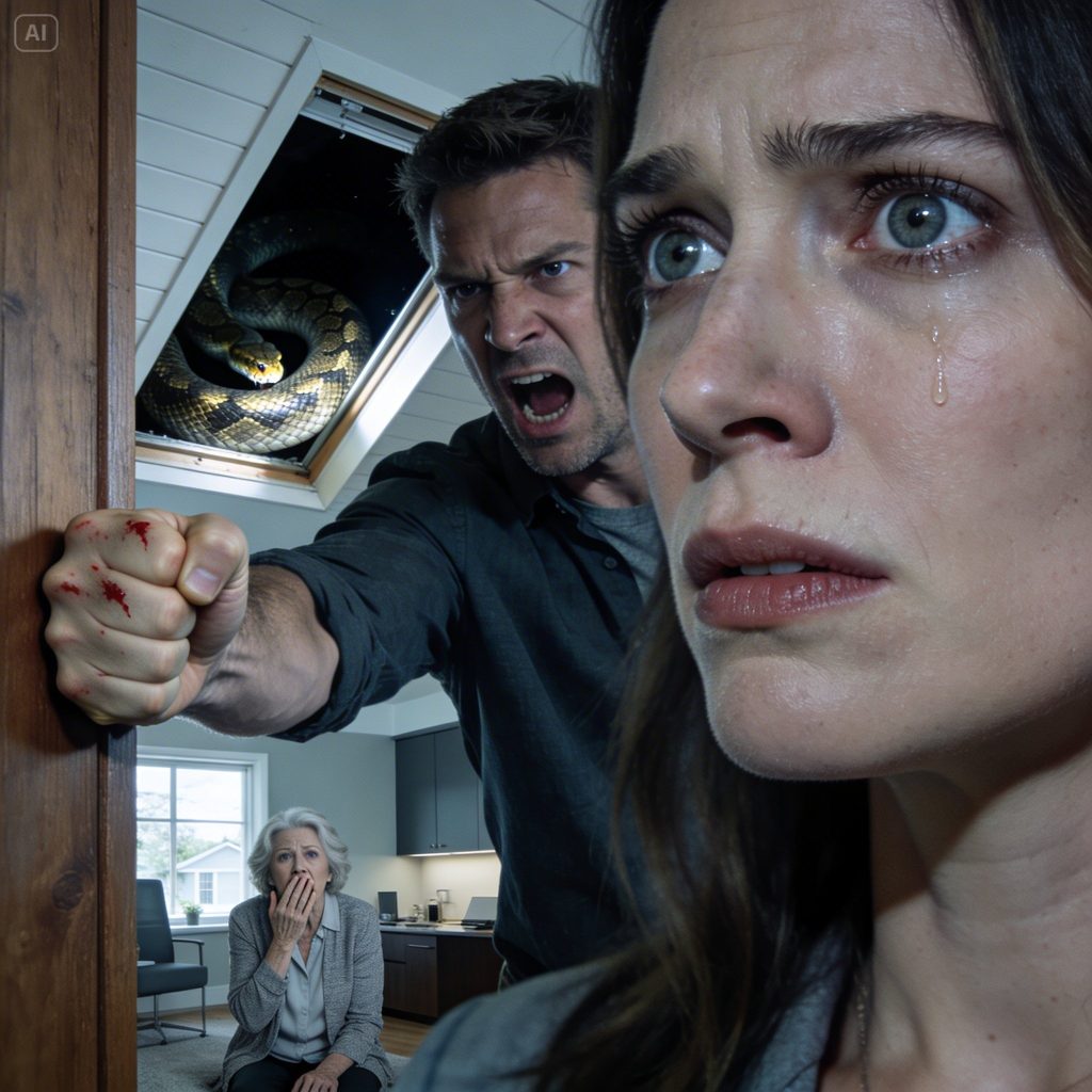 I lay awake listening while my husband, Jordan, slipped from bed. He moved carefully, like he knew which boards would complain. I heard the chair scrape softly in the hallway, the faint squeak of the attic hatch, then his voice—low, coaxing.
