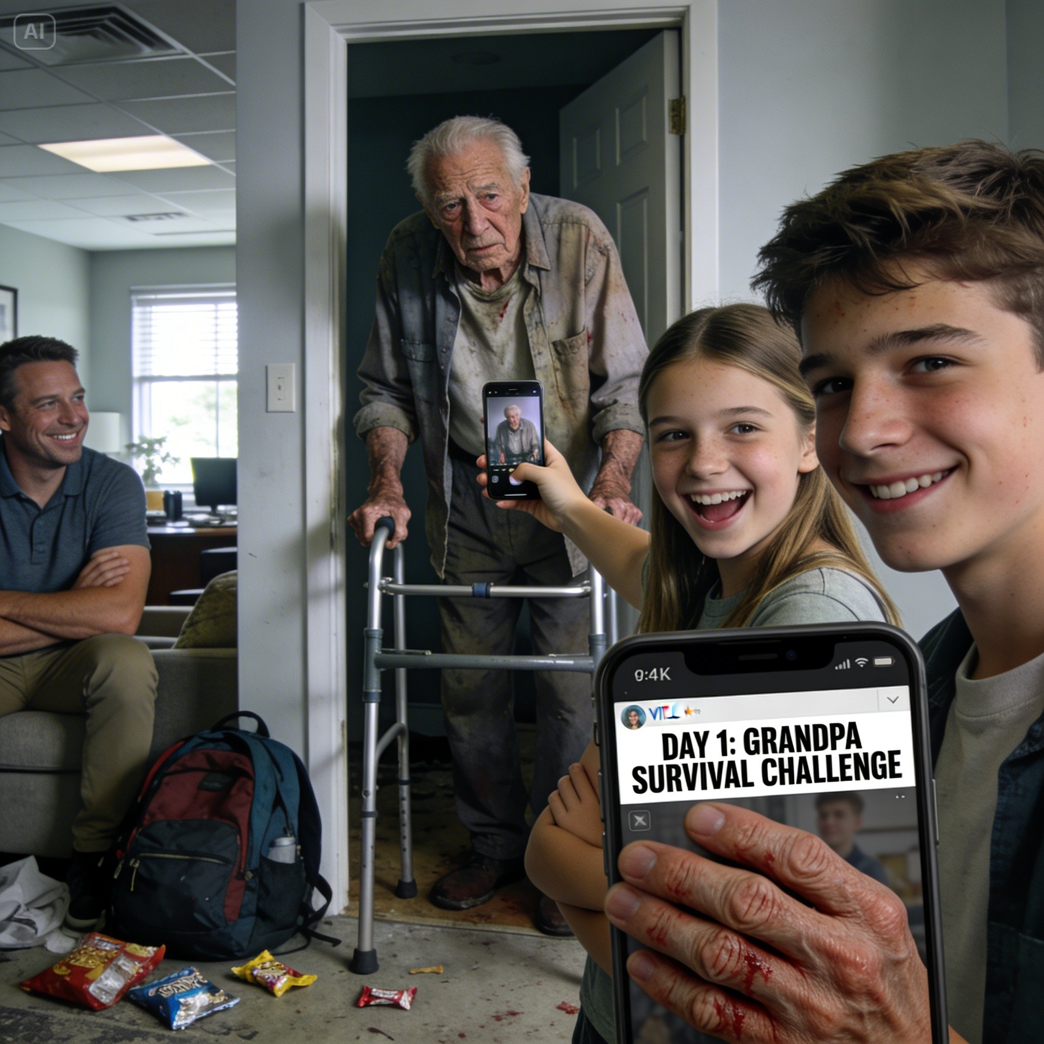 Brooke waved her phone. “It’s a challenge. We ignore Grandpa for a whole day. No helping. No food reminders. No rides. Nothing. If he’s really as helpless as he pretends, we’ll find out.”