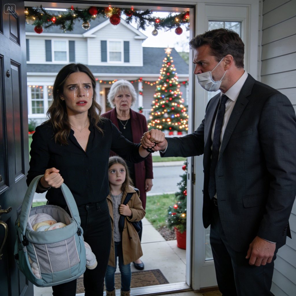 The Christmas lights blinked cheerfully above my head. My hand hovered inches from the doorknob. Thirteen minutes early, and I was standing outside a door behind which my marriage had already been dismantled—quietly, confidently, without me.