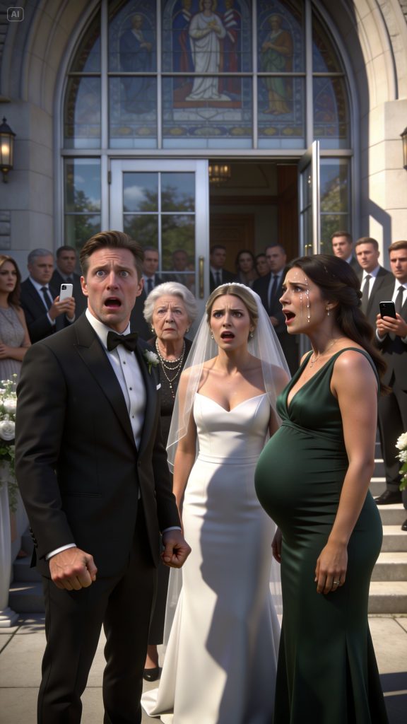 Before I could respond, the side door opened and Lena stepped out, veil half pinned, lipstick perfect, eyes sharp. She took in Nora’s belly in one glance, then looked at me.