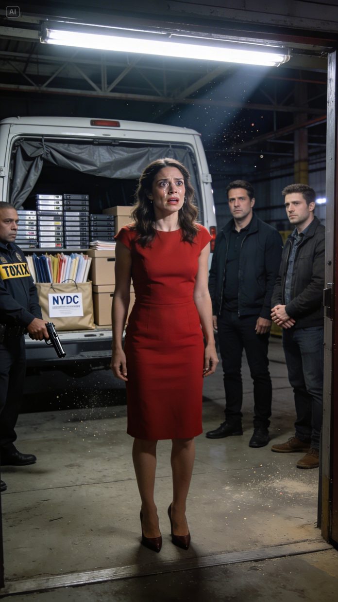 I stepped out slowly, purse on my shoulder, heels on cracked concrete. The air smelled like oil and wet metal. The warehouse light cast everything in a harsh yellow that made people look sick.