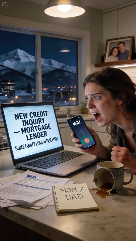 “A mortgage lender pulled my credit,” I said. “A home equity loan against my condo. Today.”