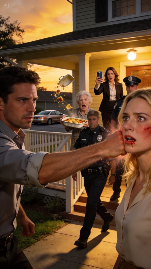 I stepped back onto the porch, away from his reach, and let the officers take the space between us. Dana moved closer to me without touching, just enough that I felt less alone. Mrs. Halprin stood frozen, her lemon bars forgotten, her eyes fixed on Mark with dawning horror.