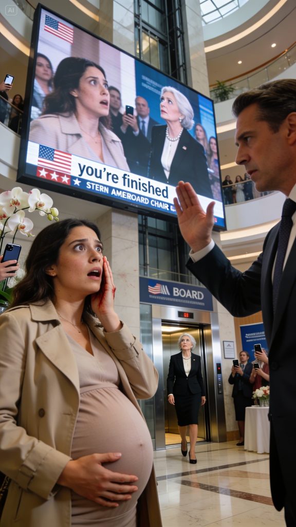 The atrium screen replayed the moment from a clean angle: Grant’s stride, his sneer, the pregnant woman’s attempt to move faster, and then the slap—sharp and undeniable. The audio picked up his words too, because the camera crew had the microphone levels set for the CEO’s remarks.