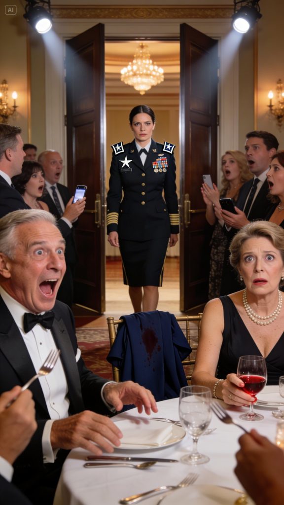 Ten minutes later, I returned through the club’s double doors wearing my dress uniform—pressed, sharp, the medals catching light. Two silver stars sat on my shoulders.