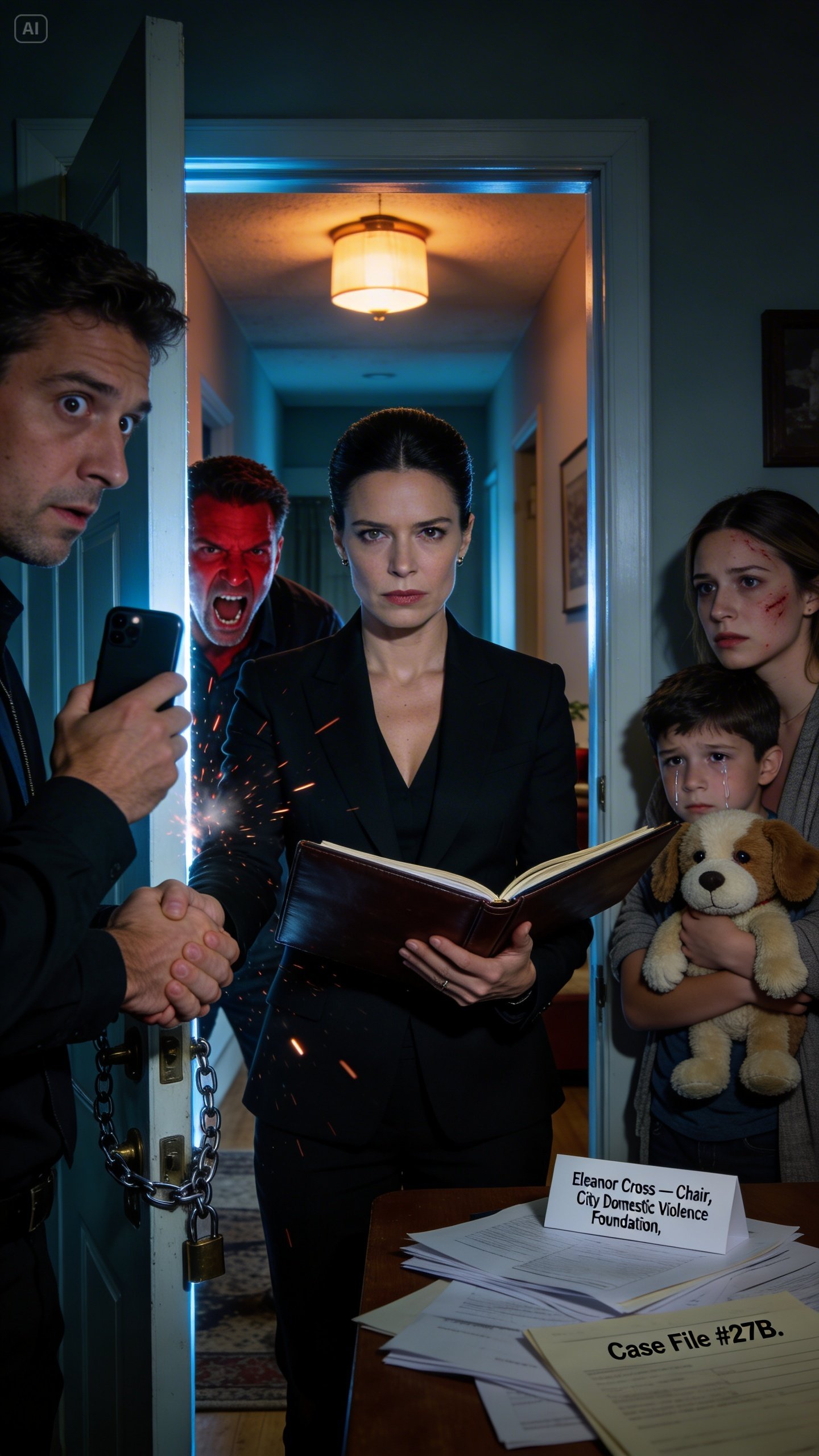 Miranda leaned in slightly, still behind the chain. “My mother is Eleanor Cross,” she said. “Chair of the City Domestic Violence Foundation.”
