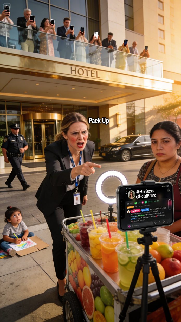 Someone had already clipped the livestream. A clean edited version: my face, my words, the vendor’s calm voice, the little girl coloring. The clip was captioned: ‘YOU’RE RUINING THE VIEW’ — Luxury Hotel Staff Threatens Street Vendor.