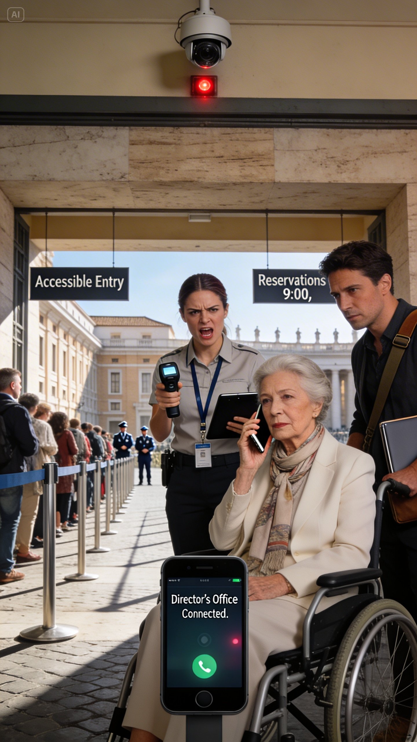 “Hello,” she said gently. “This is Dr. Eleanor Grant. I’m at the Vatican Museums accessible entrance. I’m being denied entry despite a reserved slot. Could you connect me to the director’s office?”