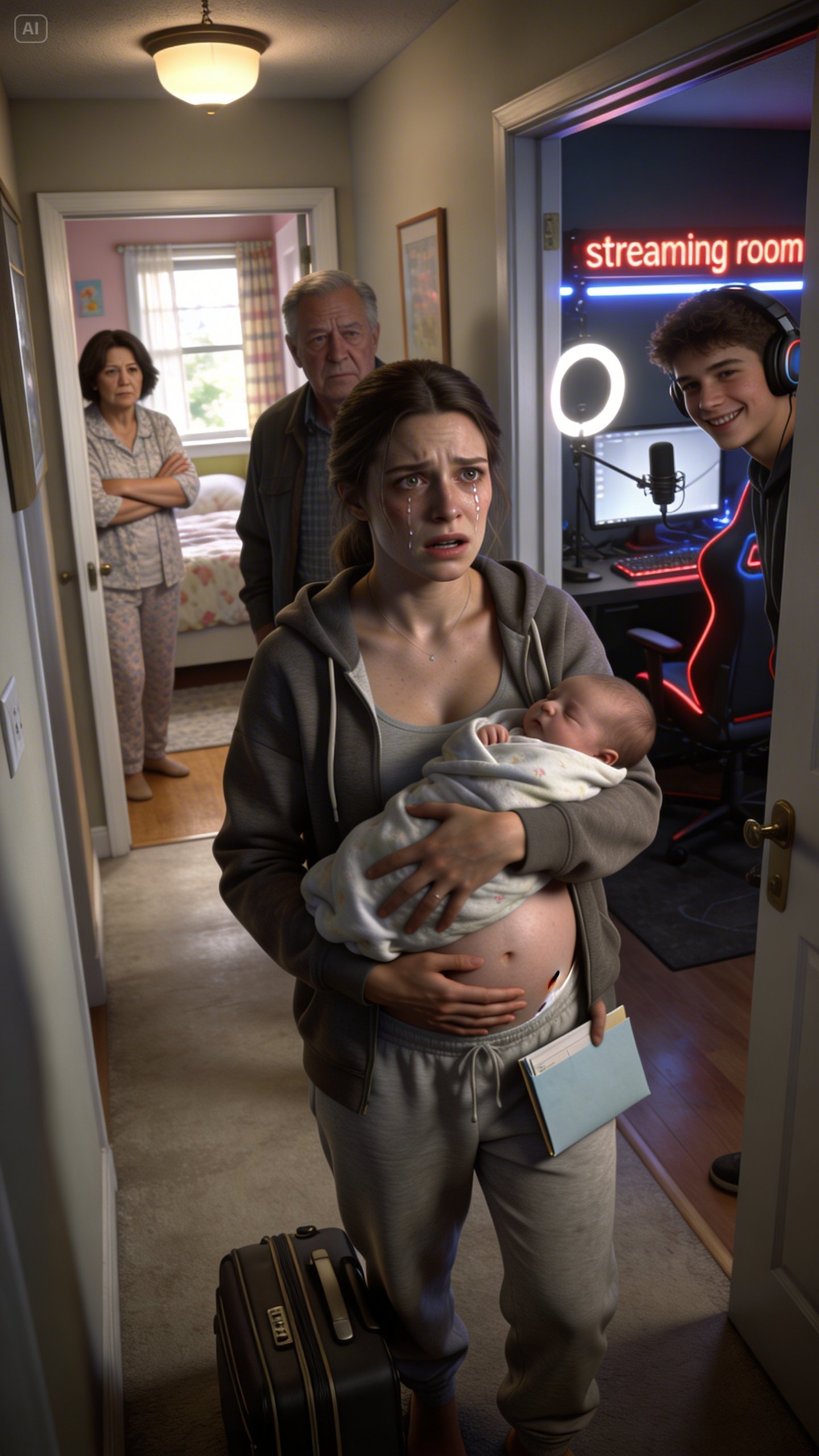 And as I stood there—post-op, bleeding, holding a newborn—my mom looked at my suitcase on the floor and said, “Try to be out by tonight. Evan needs to set up before his sponsor call.”