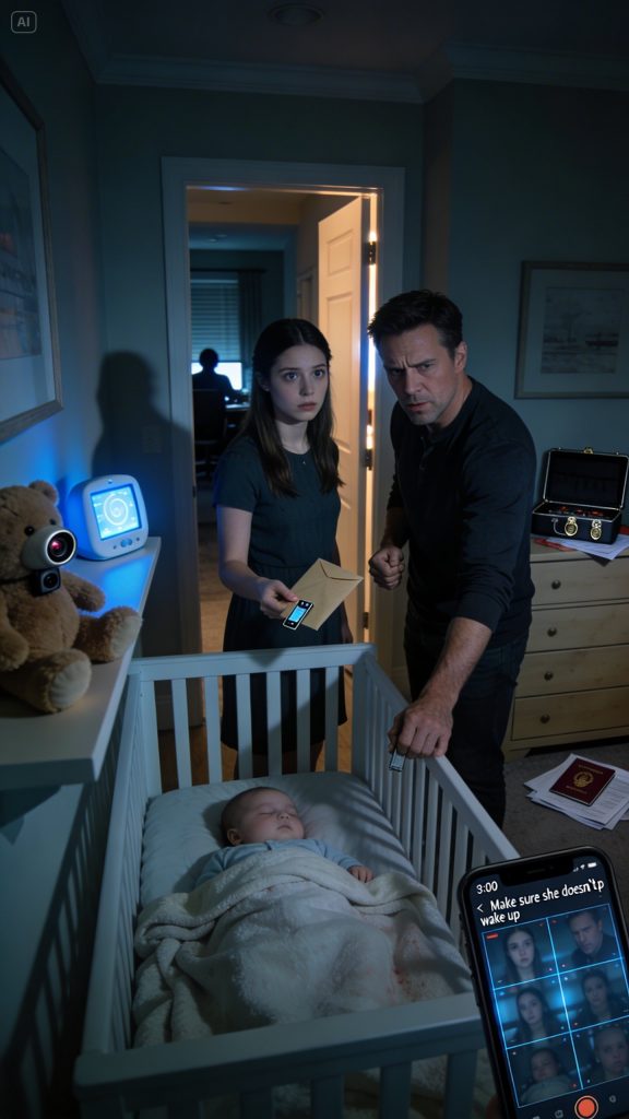 On the hallway camera, a shape moved toward the nursery. No lights. No hesitation. Two soft taps on the door, deliberate and familiar.