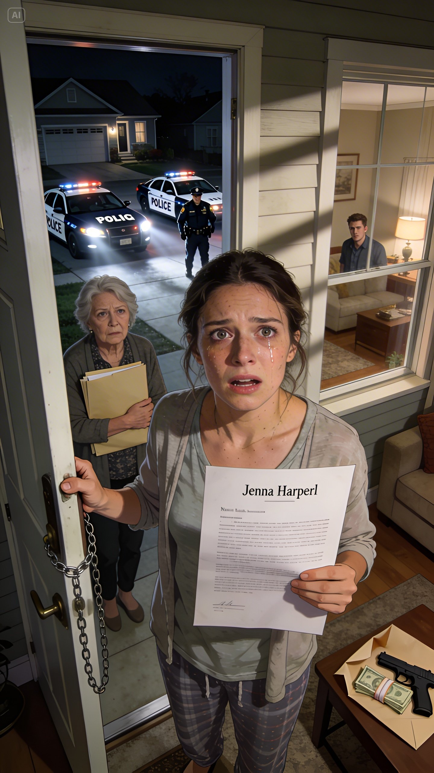 So I did. The midnight knock. The envelope. The papers with my name. The way Marlene moved toward the door before I could stop her. The officers arriving too fast, too prepared. The gun and cash sitting on my coffee table like they’d always belonged there. And Ethan—standing outside like he’d been summoned.
