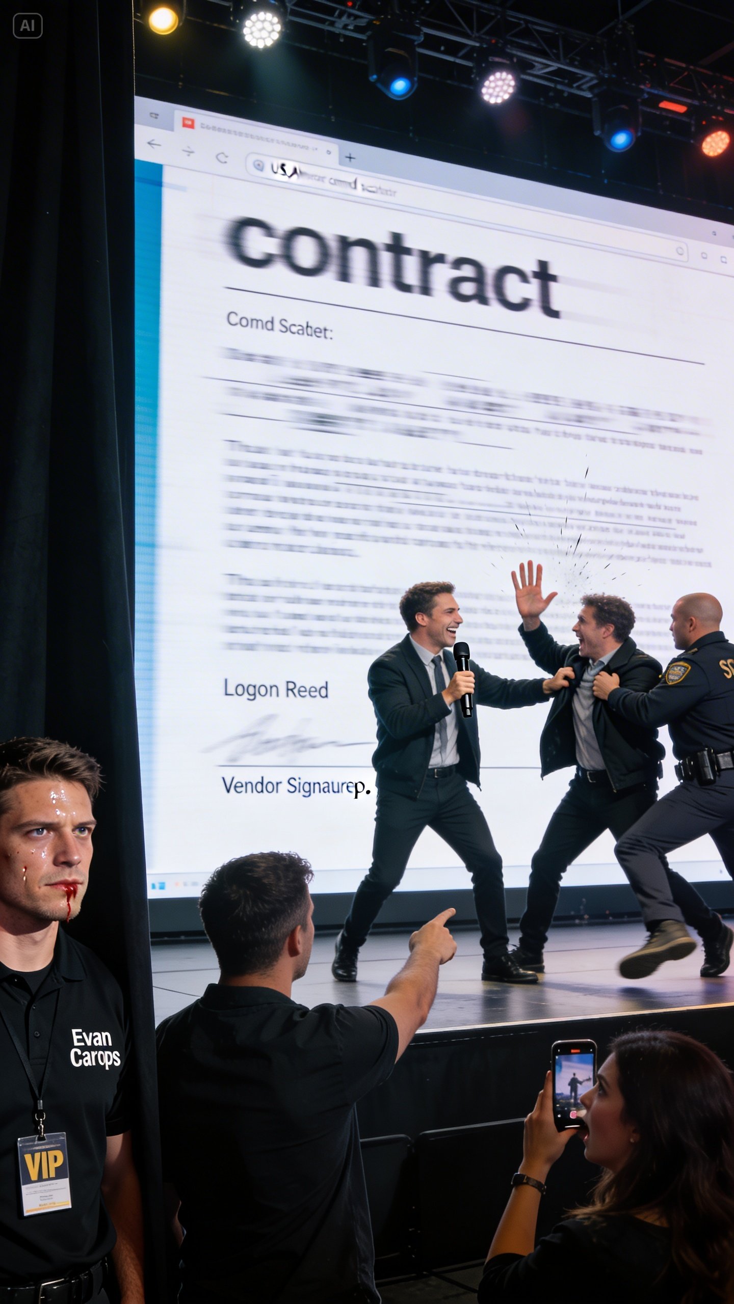The crowd expected a sleek intro video. Instead, the LED wall displayed a blown-up PDF contract. At first, nobody reacted—people assume whatever appears on a stage is intentional. Logan kept smiling, mic near his mouth, ready to launch into his speech.